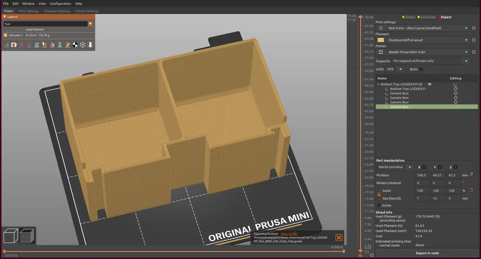- Tôi sử dụng hỗ trợ sơn tối thiểu ở mặt dưới của nắp. Không cần hỗ trợ trên bất kỳ bộ phận nào khác.