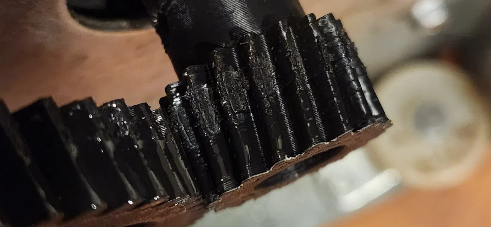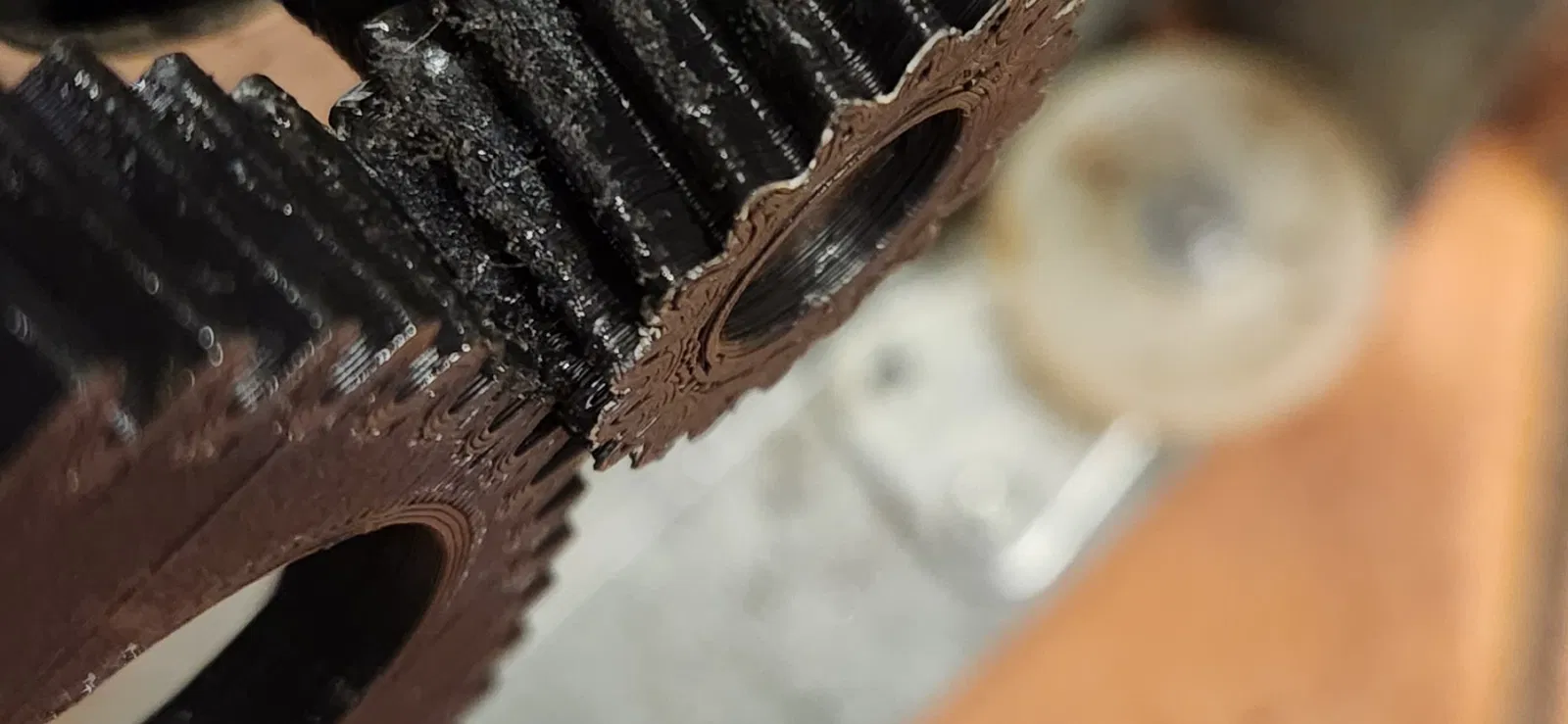 Bạn sẽ muốn in cái này bằng ABS, ASA (lựa chọn của tôi), hoặc thứ gì đó tương tự, các loại nhựa kém hơn sẽ không thể chịu được nhiệt từ ma sát của các bánh răng. Hãy chắc chắn bôi trơn với một ít mỡ mới. Phiên bản mà tôi đang tải lên là phiên bản cuối cùng mà tôi cảm thấy thoải mái khi lắp đặt vào máy. Nó sẽ chạy mượt mà trong một hoặc hai chu kỳ, nhưng bánh răng lớn vẫn có xu hướng bị kẹt. Tôi nghi ngờ điều này là do vẫn còn một chút độ chơi trong bánh răng khi nó được lắp đặt trên trục. Tôi cũng gặp phải một số hiện tượng biến dạng của ASA và các triệu chứng giống như chân voi, và tôi nhận thấy một số mảnh nhựa nhỏ tích tụ ngay cả khi máy đang hoạt động tốt. Hy vọng rằng đây chỉ là bộ bánh răng tự làm quen, chứ không phải chỉ đơn thuần là tự gãy…