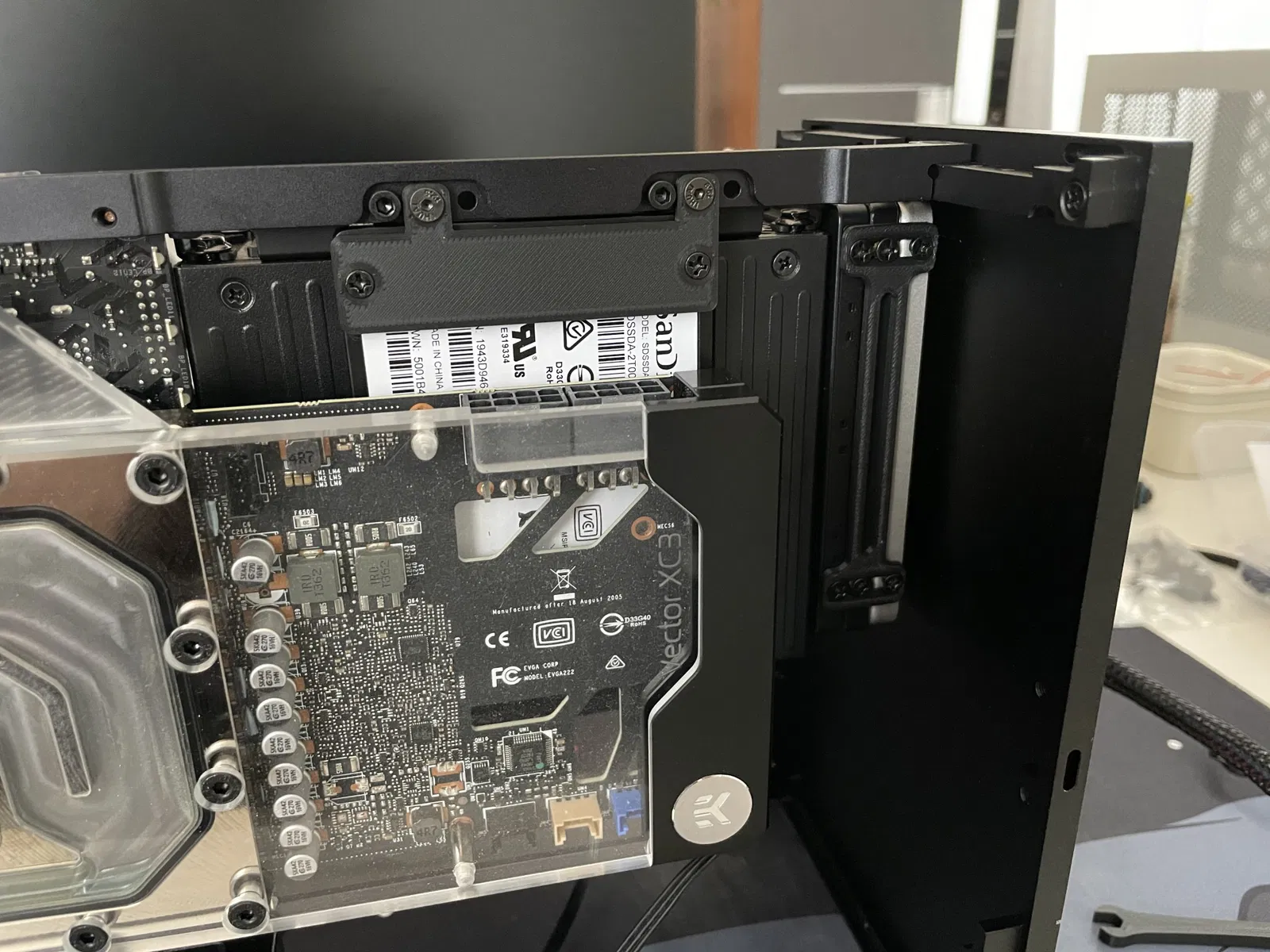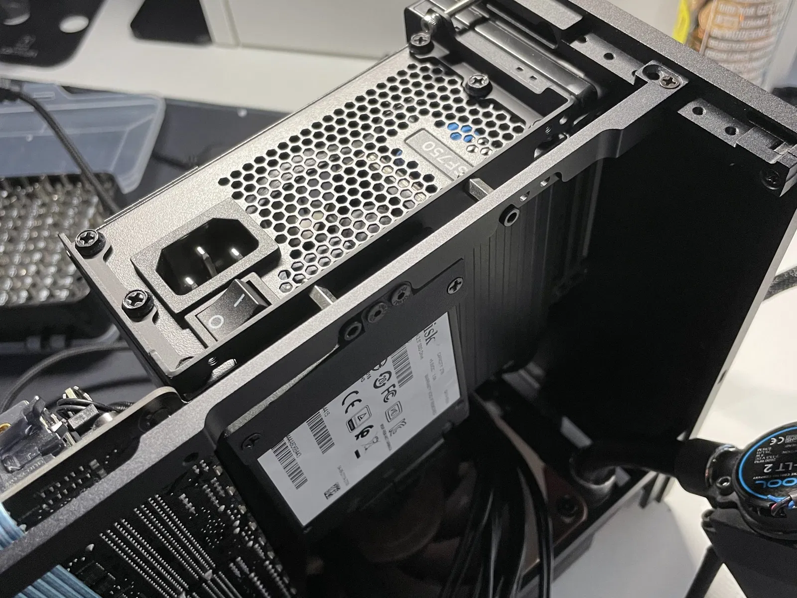 Nếu bạn muốn lắp một SSD thứ 4 (hoặc chỉ một cái thêm mà không cần giá đỡ 3x), tôi khuyên bạn nên sử dụng hoặc giá đỡ SSD bên MB hoặc bên GPU. Sự khác biệt giữa hai cái này là vị trí. Mô hình bên MB nằm gần giữa thùng (kiểm tra hình ảnh 3) và bên GPU nằm gần phía trước hơn (kiểm tra hình bìa). Cả hai đều được gắn bằng vít m3 và một đai ốc trên giá đỡ psu vì giá đỡ psu tự nó không có ren.