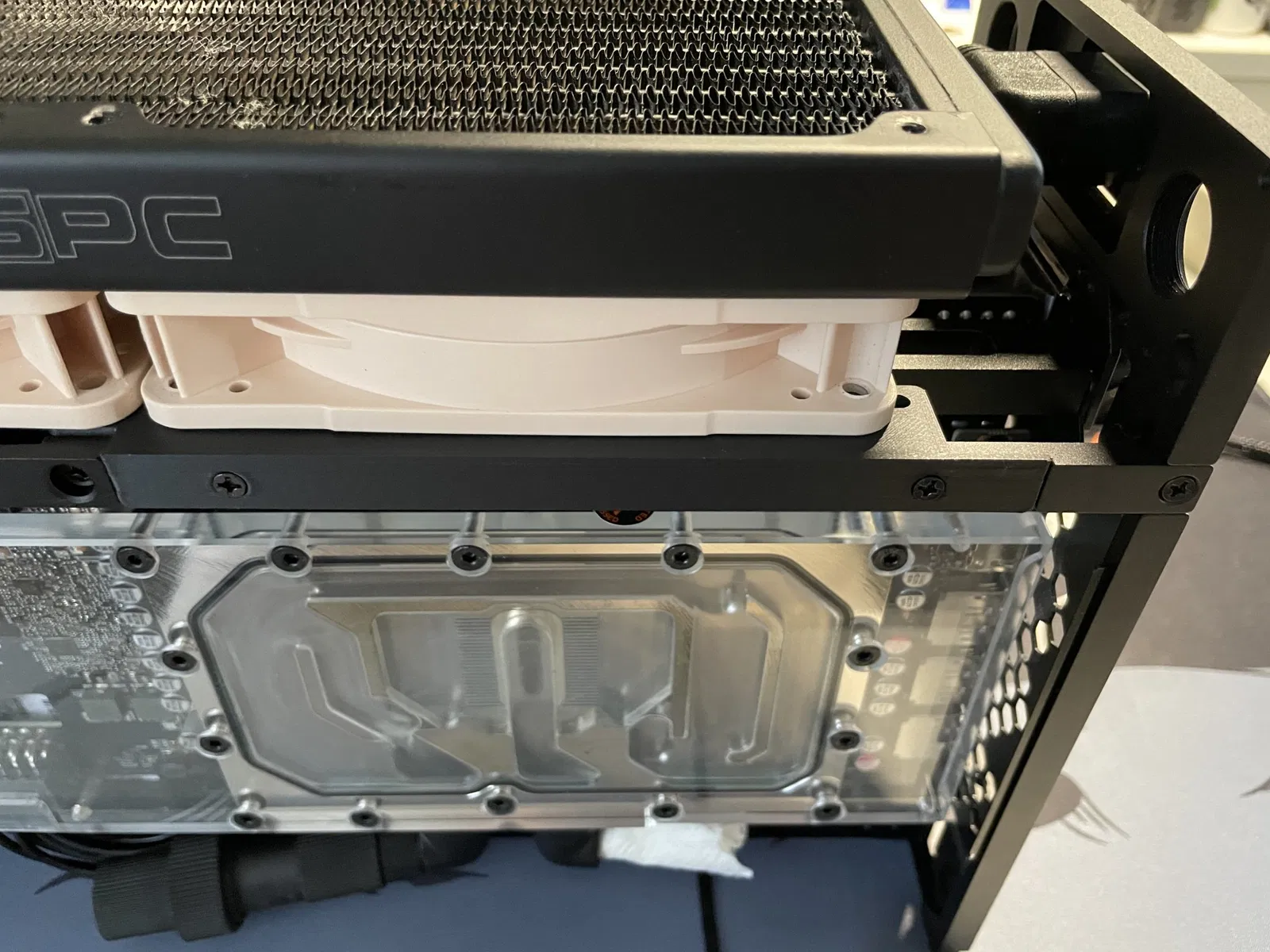 Các giá đỡ bộ tản nhiệt sử dụng vít m3x8mm và cho phép bạn dẫn ống nước làm mát qua bo mạch chính phía sau bộ tản nhiệt. Ngoài ra, nó nên nằm thấp hơn một chút so với bản gốc để bạn có thể làm việc với thêm một milimét (Bạn sẽ cần điều đó).