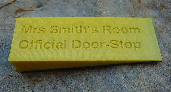 Một tệp STL mẫu được cung cấp, nhưng bạn có thể sử dụng tệp OpenSCAD để tạo ra một chặn cửa với các nhãn tùy chỉnh của riêng bạn.