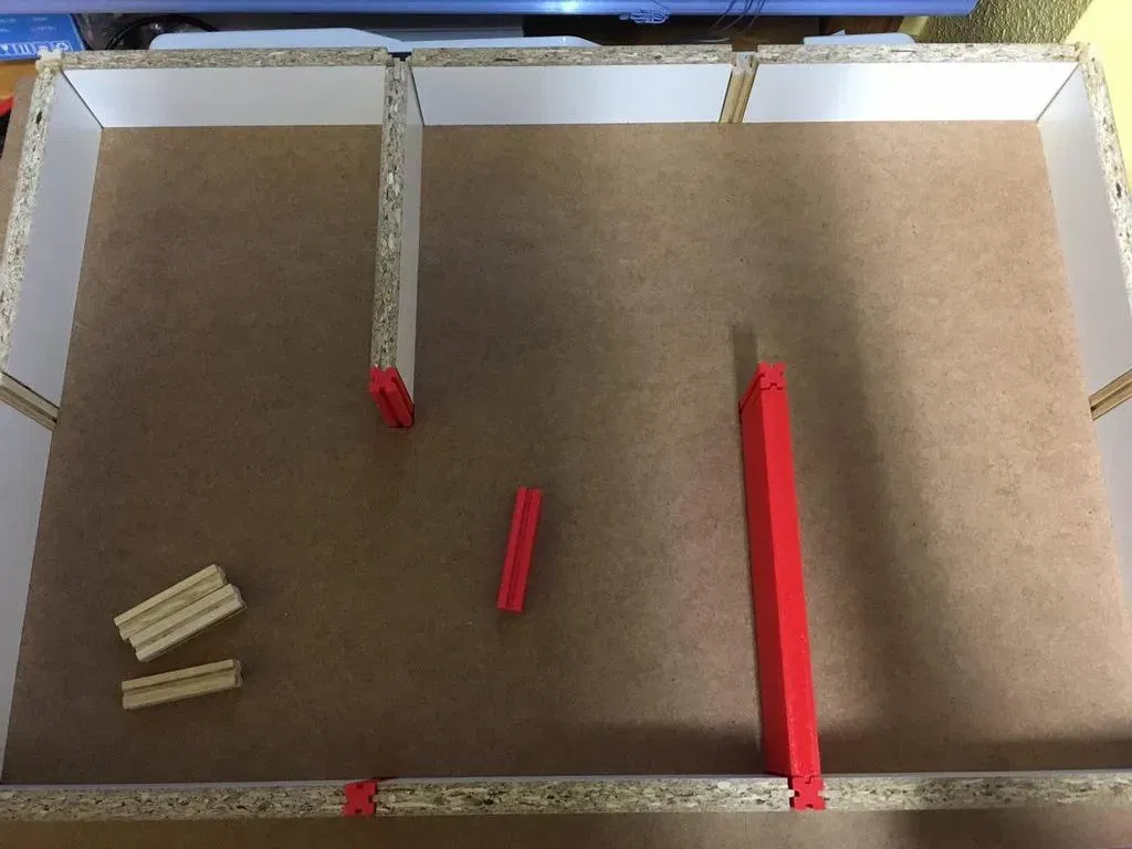 Tôi đã tạo ra một bot giải mê cung (hay còn gọi là micromouse) cho cuộc thi tại OSHWDem 2017 tổ chức tại La Coruña. Để kiểm tra bot, một mê cung với kích thước thực tế là bắt buộc, vì vậy tôi đã tạo ra các phần này.