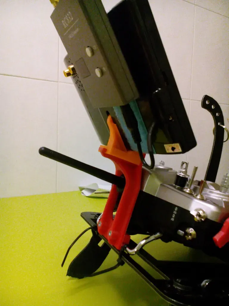 Tôi đã in một thời gian trước để gắn màn hình FPV của mình vào Taranis. Món đồ in rất tốt và vừa vặn cả Taranis và màn hình, nhưng góc màn hình thì quá phẳng đối với tôi.