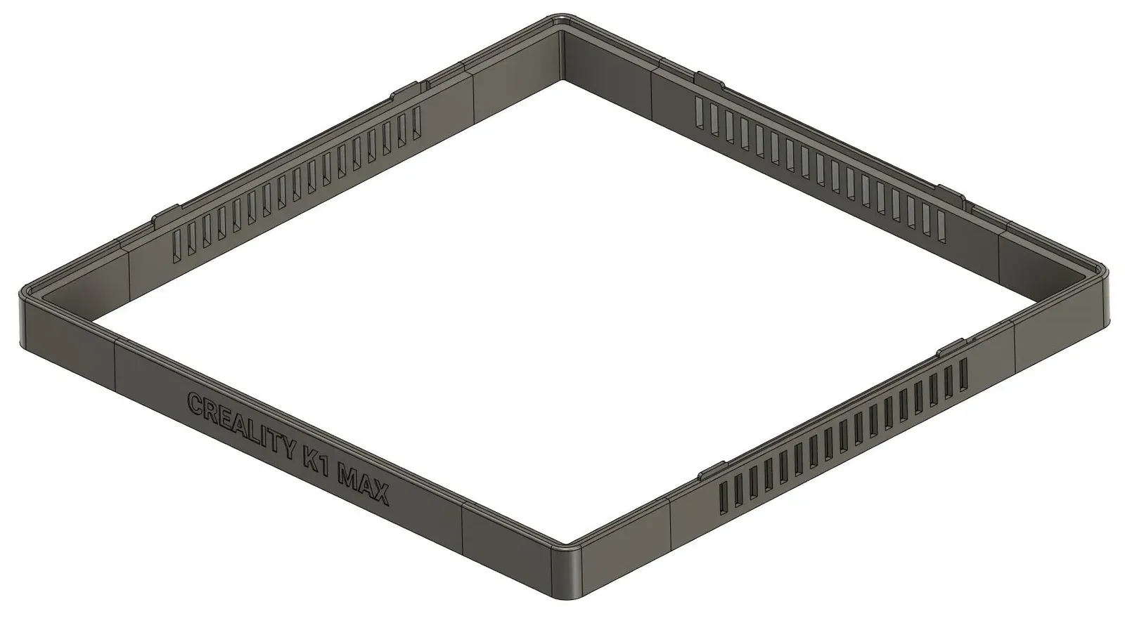 Nắp nâng thiết kế tùy chỉnh của tôi cho Creality K1 Max. Tôi muốn một phiên bản đơn giản không yêu cầu thêm linh kiện nào nhưng cho phép tôi mở và đóng các lỗ thông gió một cách linh hoạt.