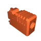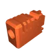 In với giá đỡ với đầu nòng hướng xuống mặt bàn in, từ một loại filament màu cam sáng để đảm bảo an toàn.