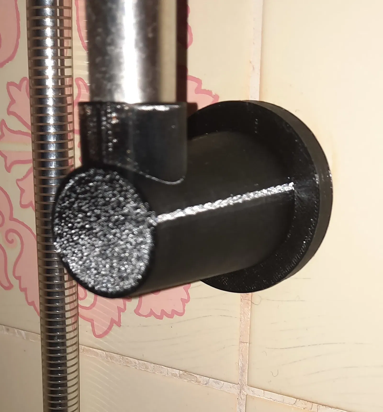 Một giá đỡ đơn giản cho thanh trong vòi hoa sen vì cái cũ đã bị gãy và không ổn định lắm. Thanh bao gồm một ổ đỡ trên và một ổ đỡ dưới (cả hai đều giống nhau) được gắn vào tường ở giữa bằng một ốc/vít và một nắp đậy để che lỗ lắp đặt. Thanh hiện có có đường kính 19mm.
