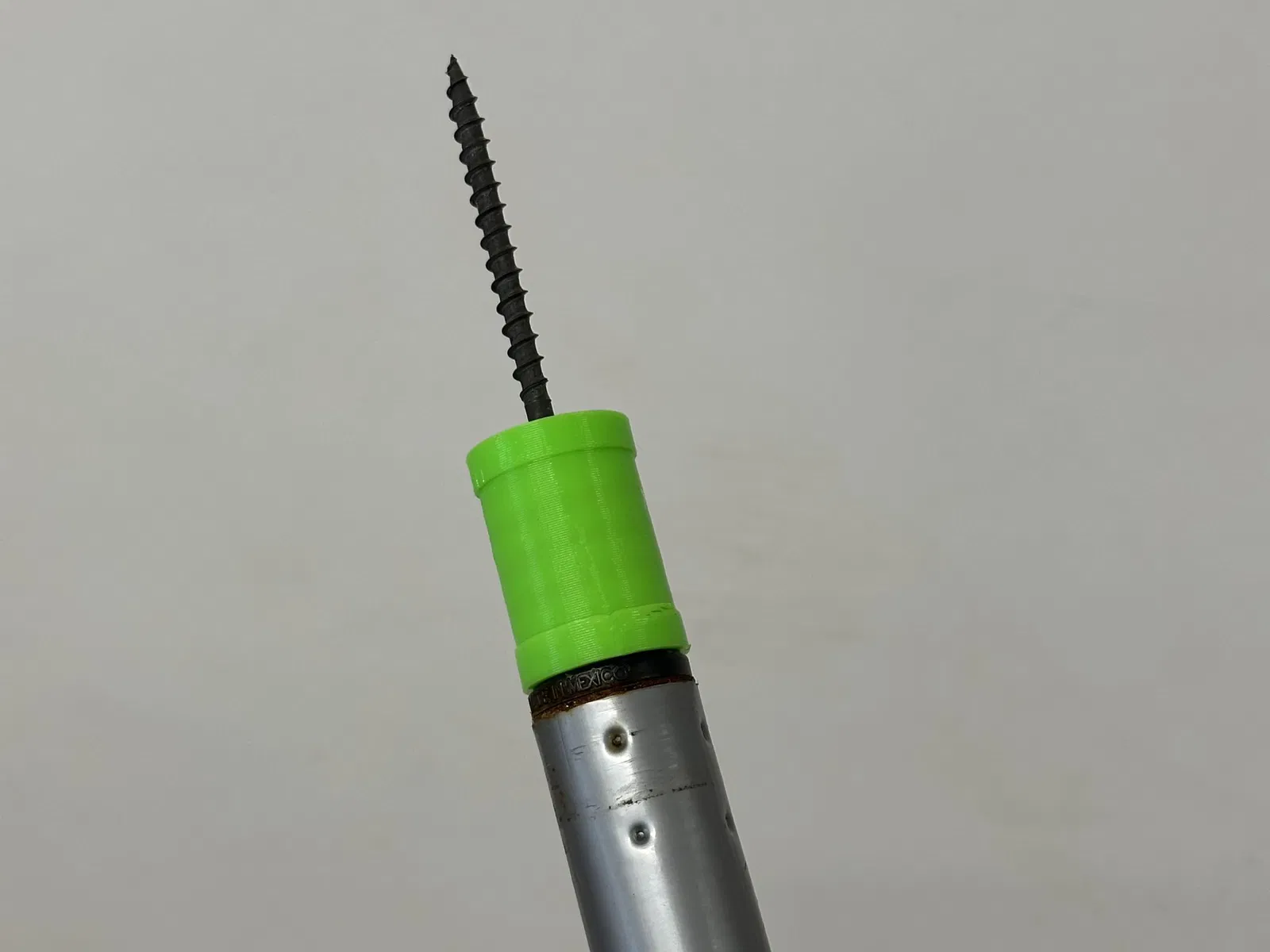 Điều này phù hợp với ren của chổi và cần sơn thông thường (tại Mỹ, có thể ở những nơi khác). Lỗ cho vít có đường kính 3.7mm. Tôi đã sử dụng một vít có ren thô #8 x 2.5 inch. Nó làm rất tốt việc thu gom lá và tôi nghĩ là rác.