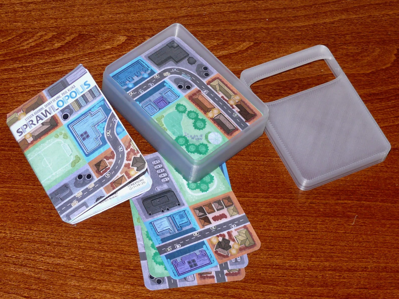Một hộp đơn giản cho phiên bản In và Chơi của Sprawlopolis. Bao gồm chỗ cho bộ ba mở rộng.