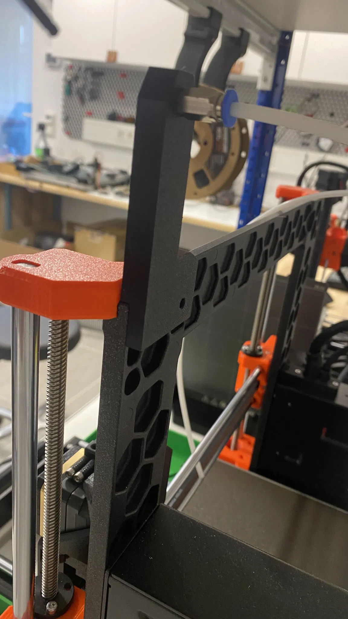 Các giá đỡ này dễ dàng in ấn, có thể được phản chiếu để phù hợp với cả hai bên, và được gắn trực tiếp vào khung Z. Bạn cần thay thế ốc M3 bên trong của đầu Z bằng một cái dài 2cm. Đảm bảo rằng bạn vặn ốc M3 dài 3cm qua đầu Z và khung cho đến khi nó bằng phẳng với mặt sau của khung Z trước khi đặt giá đỡ ống PTFE vào túi tổ ong. Sau đó, vặn chặt ốc M3 để cố định giá đỡ ống PTFE.