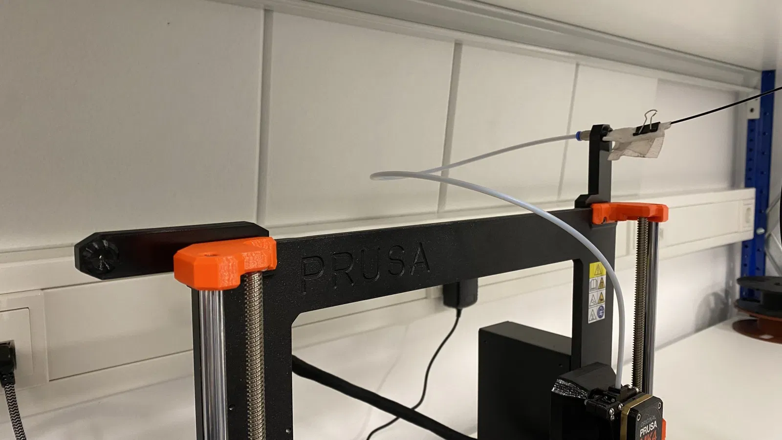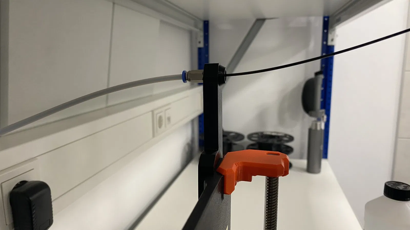 Một cánh tay mở rộng để giữ một ống PTFE với bộ ghép khí nén trên khung Z của MK4.