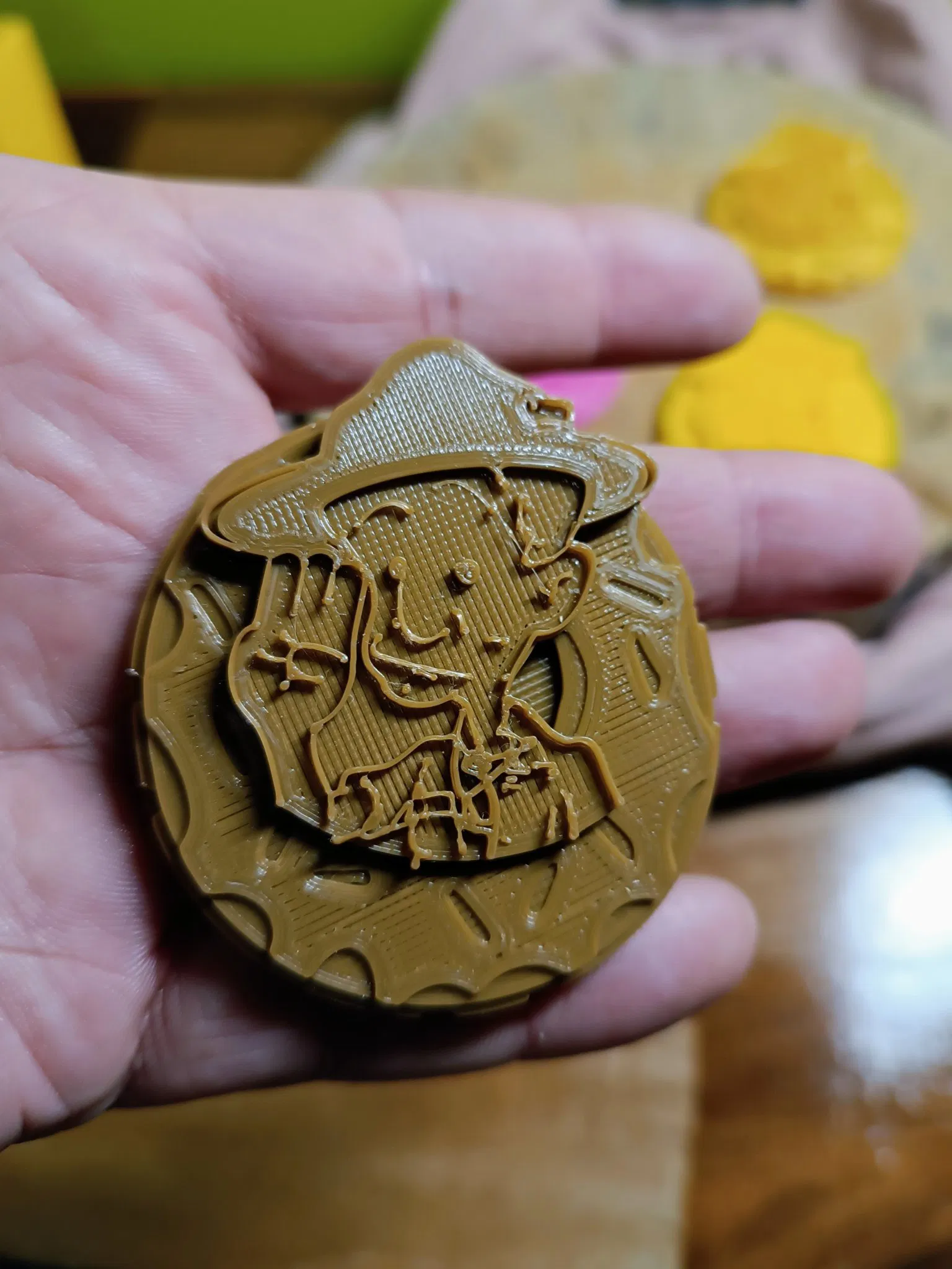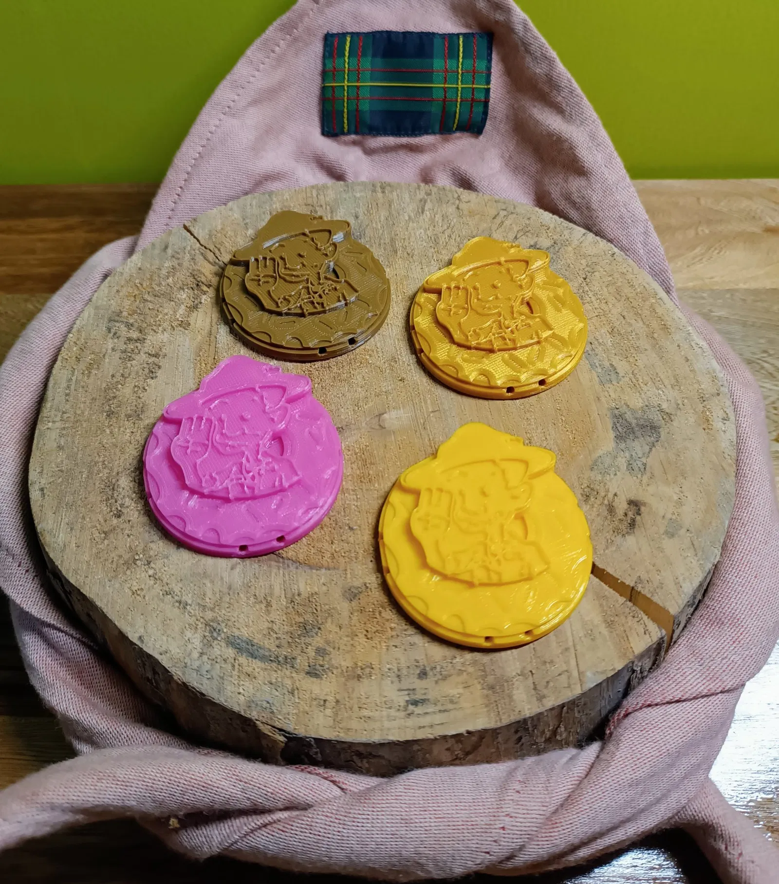 Huy hiệu hoặc huy chương, lý tưởng cho một chiến dịch bán bánh donut giữa các Scout hoặc WAGGGS. Chúng tôi in những cái này để công nhận những người bán bánh donut tốt nhất. Chúng đã sẵn sàng để được khâu.