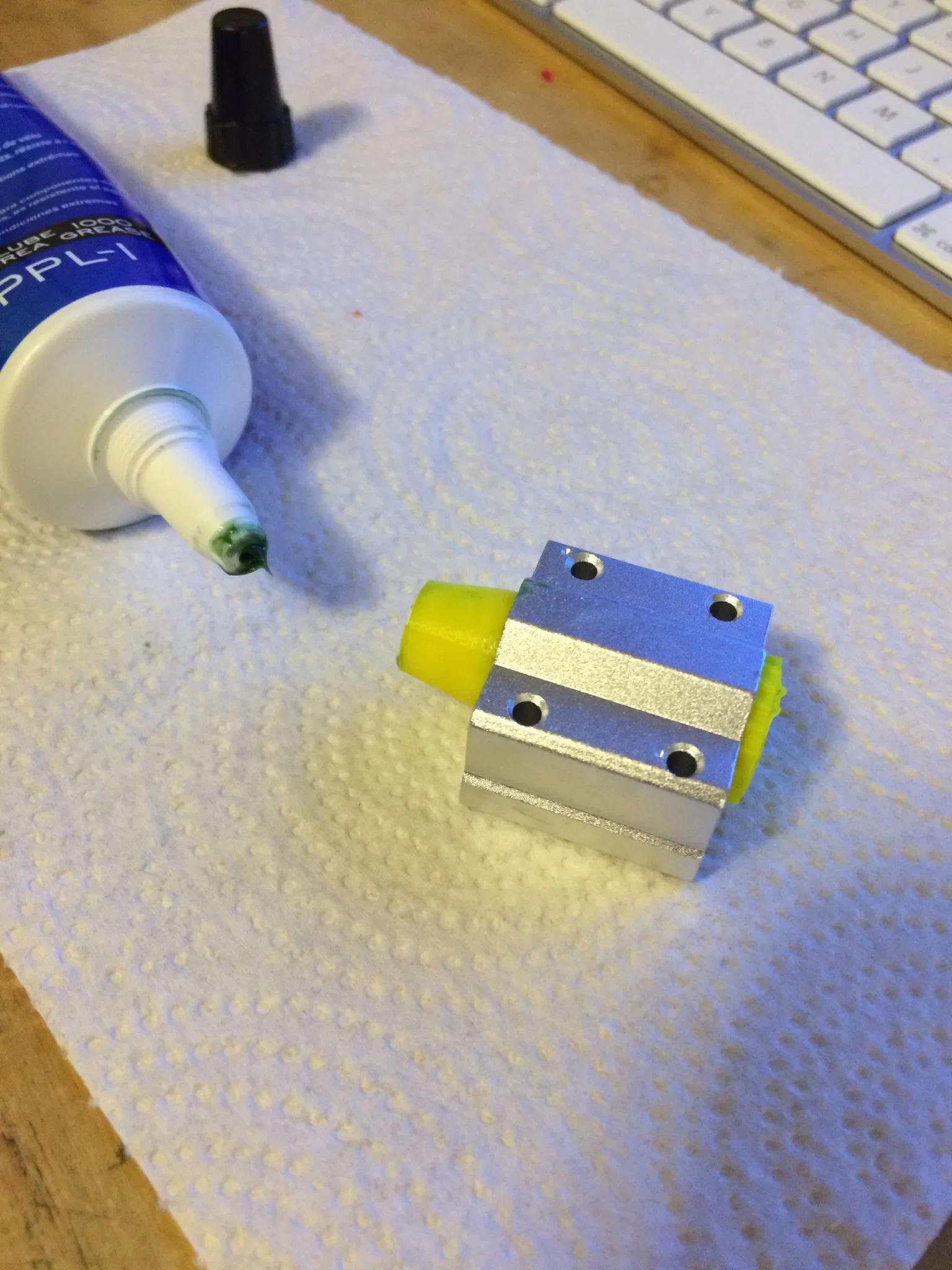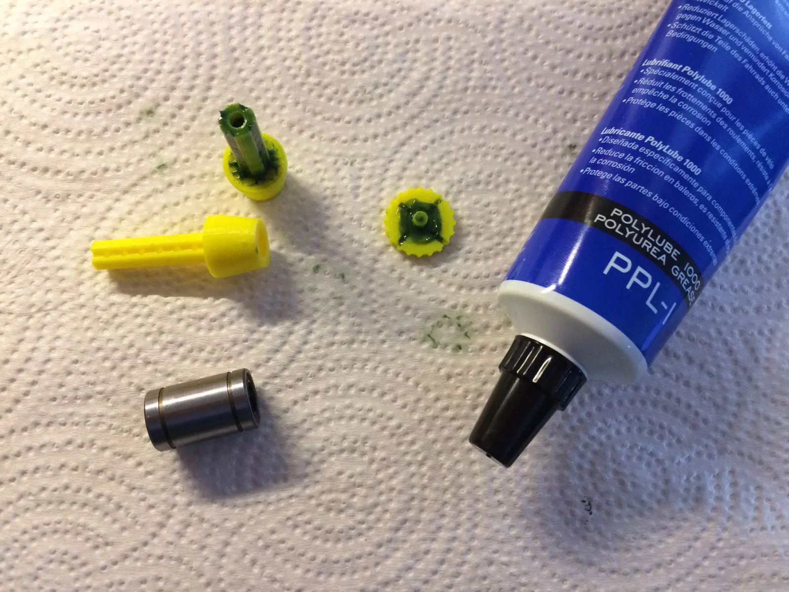 Nếu bạn đang sử dụng mỡ như của tôi, nó RẤT cứng, và cần một chút nỗ lực để đưa nó qua toàn bộ vòng bi vì các lỗ khá nhỏ..