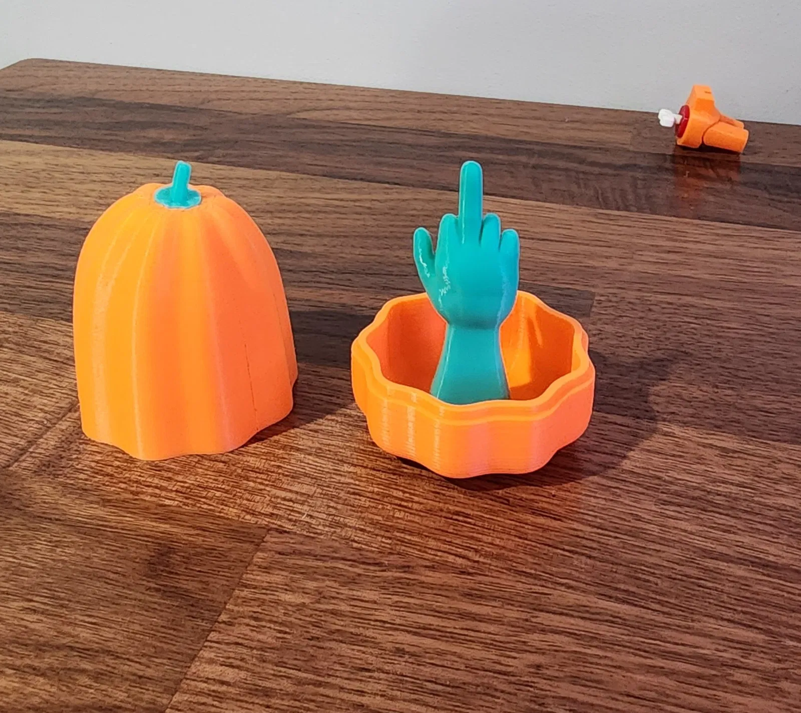 Bạn đã sẵn sàng để biến Halloween của mình thành một bất ngờ hài hước chưa? Hãy chào đón Bí Ngô Ngón Giữa! Món đồ chơi thông minh này mang đến một sự xoay chuyển hài hước cho trải nghiệm bí ngô truyền thống. Được chế tác với một cú xoay, chỉ cần nâng nắp lên, và bên trong, bạn sẽ tìm thấy một ngón giữa nhỏ, sẵn sàng thêm một chút niềm vui ồn ào vào lễ hội của bạn. Hoàn hảo cho các trò đùa, trò nghịch, hoặc như một món quà bất ngờ trong túi quà Halloween dành cho người lớn của bạn. Dù là cho bữa tiệc Halloween của bạn hay chỉ để làm phong phú thêm trang trí của bạn, Bí Ngô Ngón Giữa chắc chắn sẽ mang lại tiếng cười và sự vui vẻ. Xin vui lòng chia sẻ những sản phẩm của bạn! Và nếu bạn có thể chia sẻ chúng trên Thingiverse nữa.