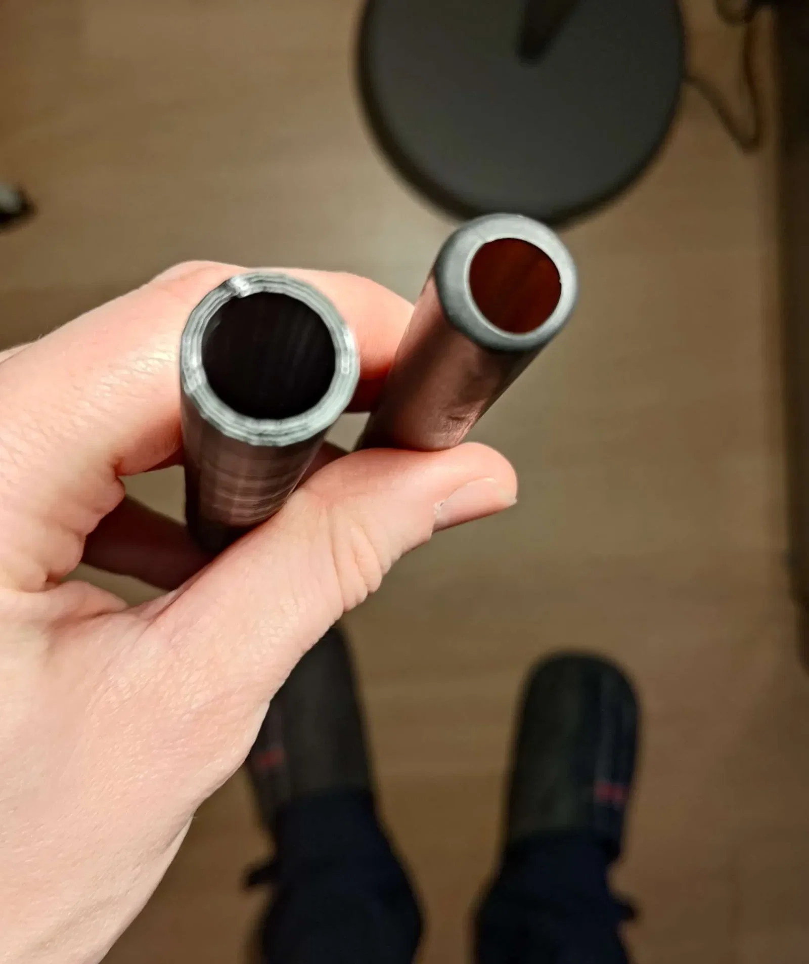 Trong bức ảnh kèm theo, bạn có thể thấy một phiên bản in 3D bên cạnh biến thể bằng nhôm/đồng được cung cấp bởi một công ty chuyên về các bọc tùy chỉnh, cao hơn cho những chiếc xe đạp này.