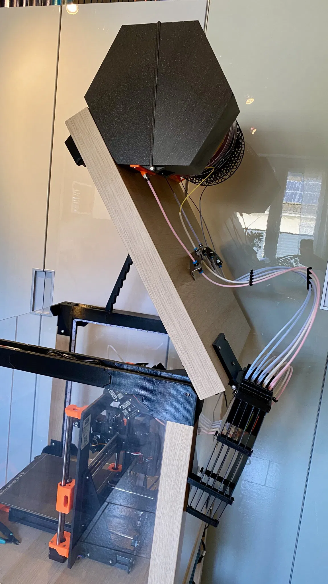 Tôi đã gắn một bản lề vào Segmenter Prusa MMU 3 và xây dựng một giá đỡ góc phù hợp.