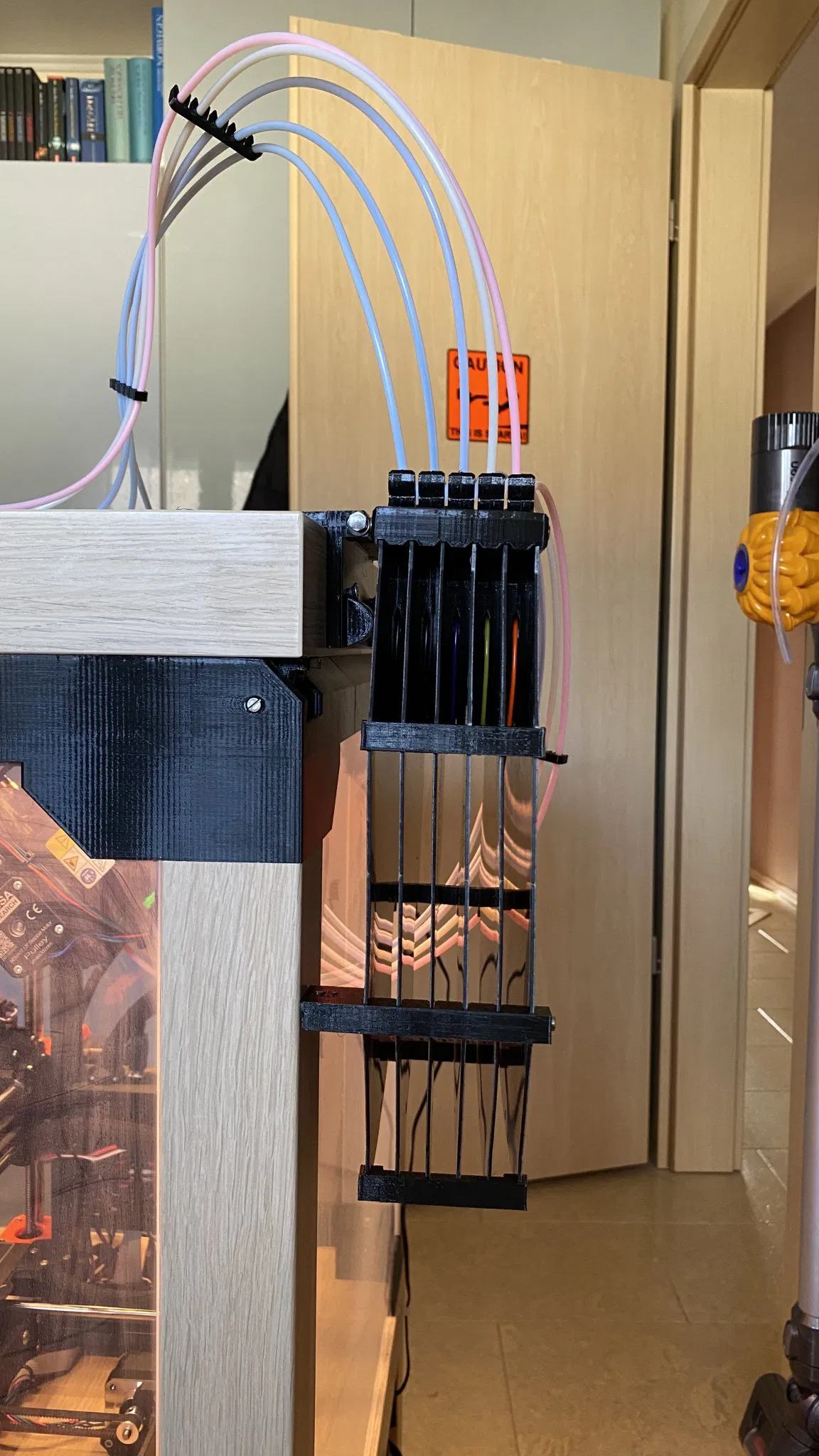 Giá đỡ đệm Prusa MMU3 R3 đã được rút ngắn và hiện hoạt động như một điểm dừng ở mặt sau của Enclosures V2.