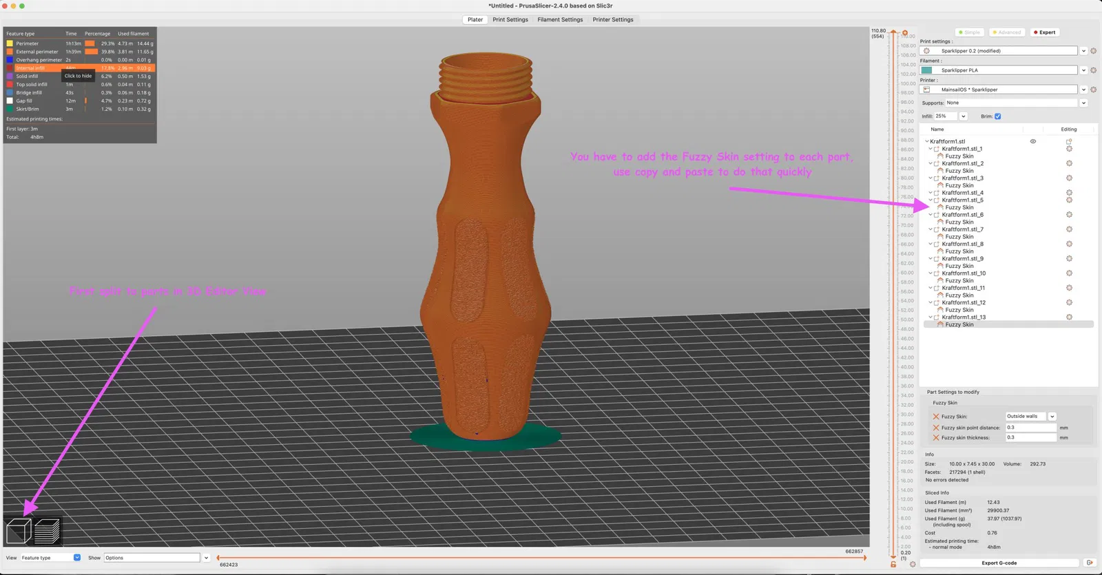 - Đối với Fuzzy Skin, hãy xem ảnh để biết cài đặt slicer.