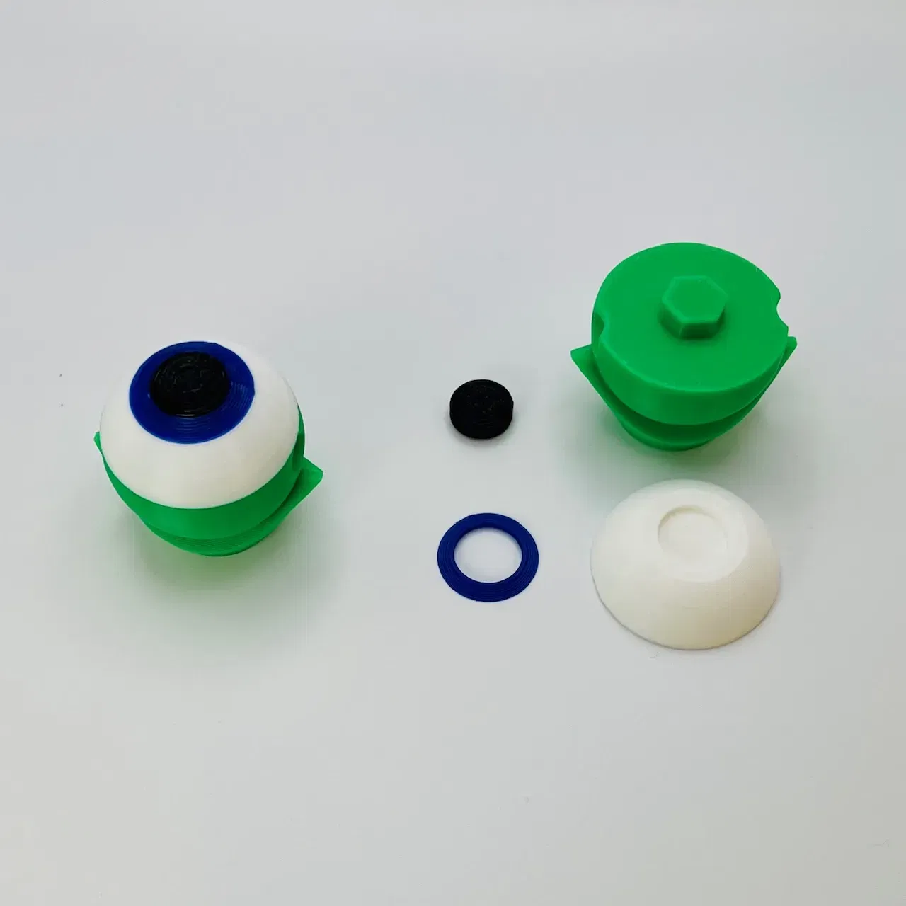 Ghép Eye và Stalk lại với nhau (có thể cần một chút keo để lắp cố định.) Uốn mí mắt bên trong (LidA) lên Eye. Sau đó, ghép mí mắt bên ngoài (LidB) lên mí mắt đầu tiên. Phía mặt in của mí mắt nên hướng xuống dưới về phía cuống.