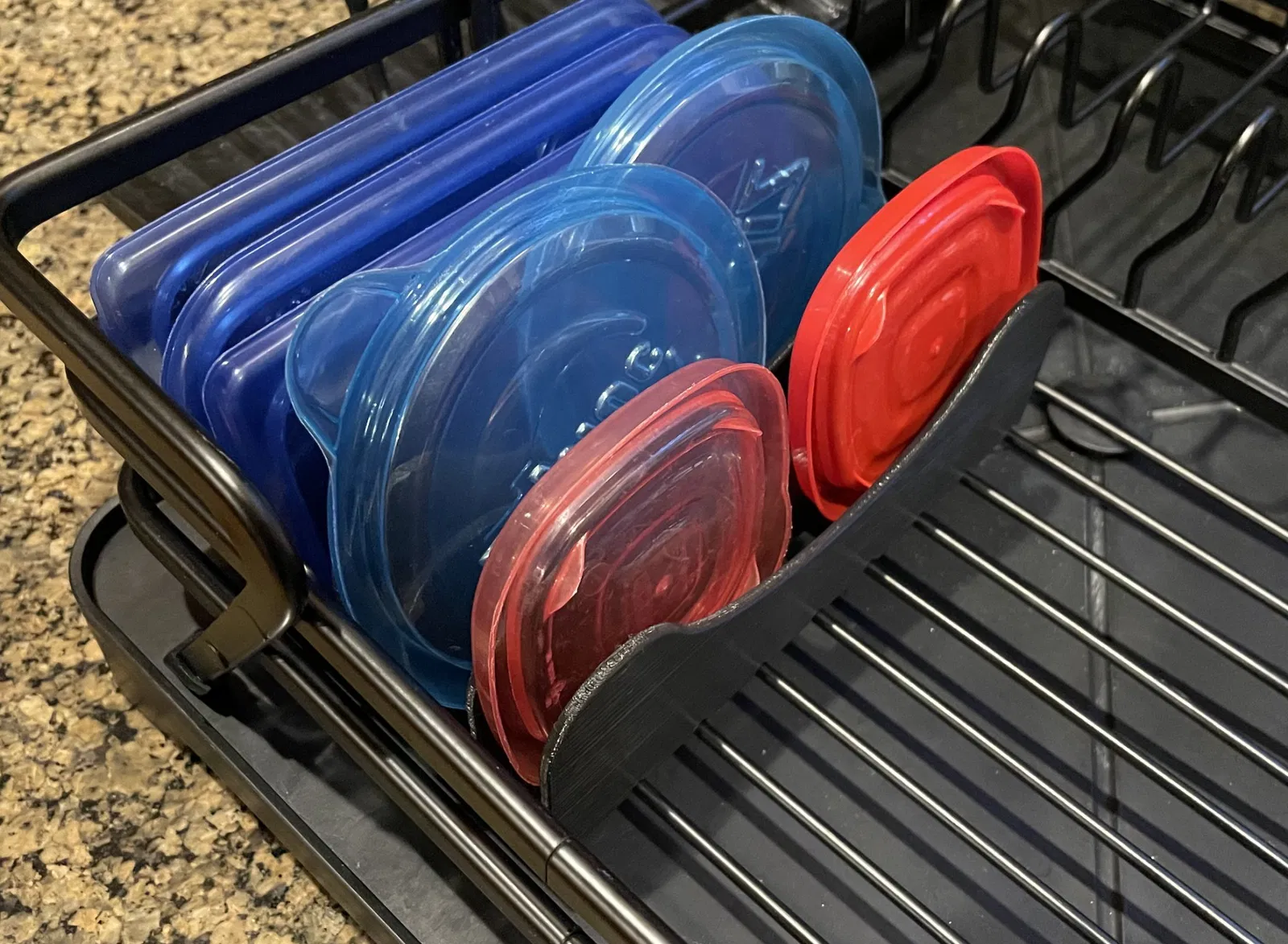 Trong khi chúng tôi thích cái giá phơi cho các món khác, những nắp nhỏ cho các hộp đựng nhựa của chúng tôi cứ rơi qua. Phụ kiện giá phơi này được thiết kế để giữ những nắp này trong một diện tích nhỏ để phơi khô qua đêm.