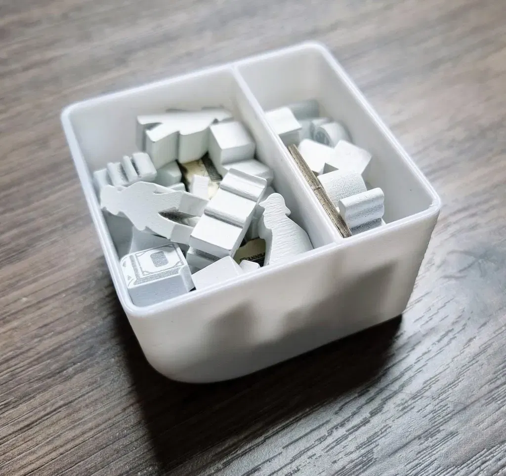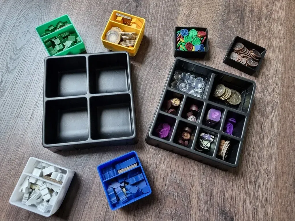 Ngăn lớn của hộp người chơi được thiết kế cho tất cả các mảnh trò chơi cơ bản và mọi thứ cho các phần mở rộng sẽ vào ngăn nhỏ.