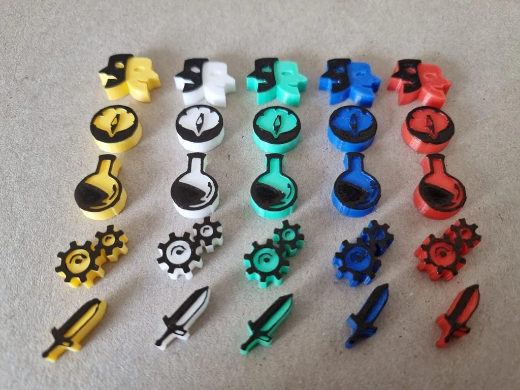 Các token này không phải là sản phẩm chính thức của Stonemaier Games mà được tạo ra bởi tôi dựa trên các biểu tượng của trò chơi.