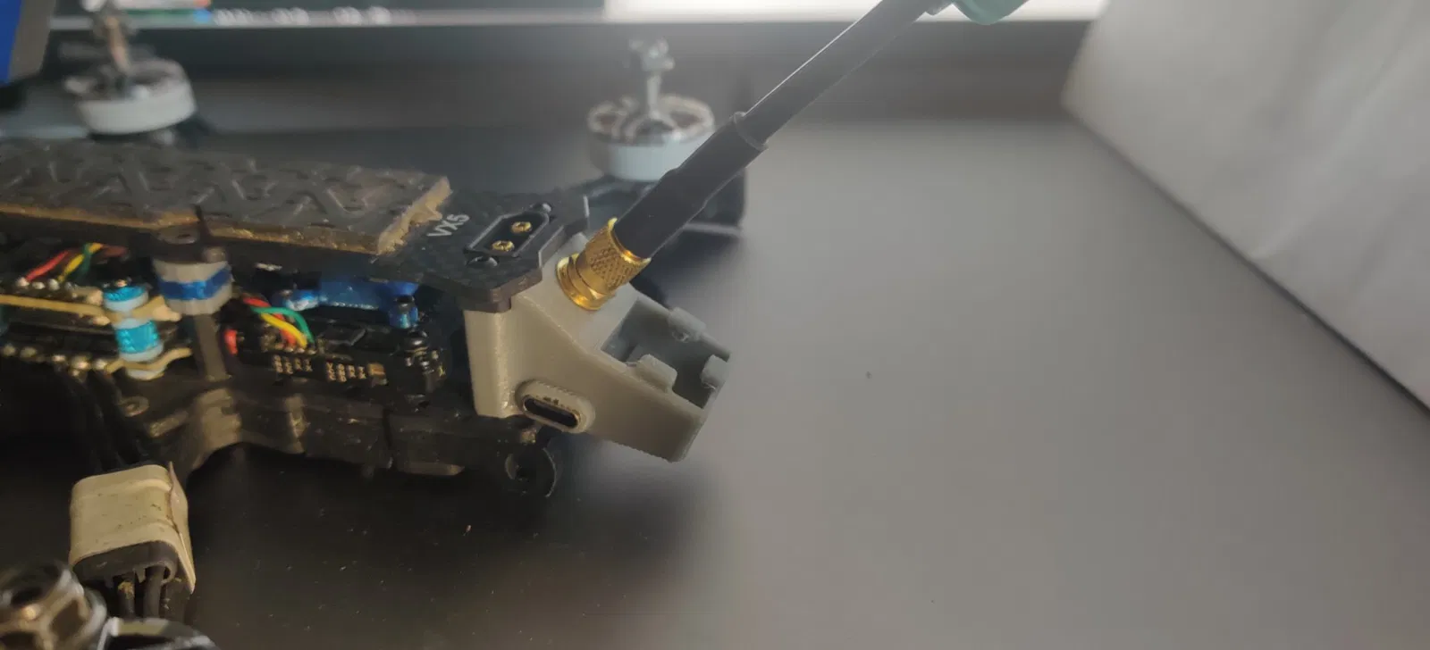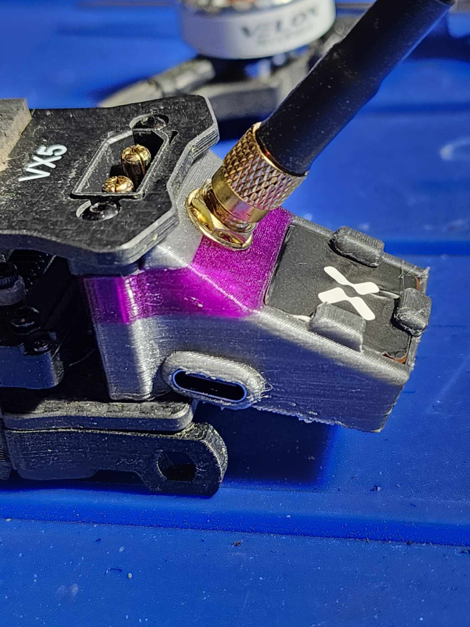 Đây là một giá đỡ cho Foxeer m10Q 180 cho FlyFishRC Volador VX5, bao gồm cả chỗ cho một giá đỡ SMA và một đầu nối USBC có thể được nối cho Walksnail Avatar.