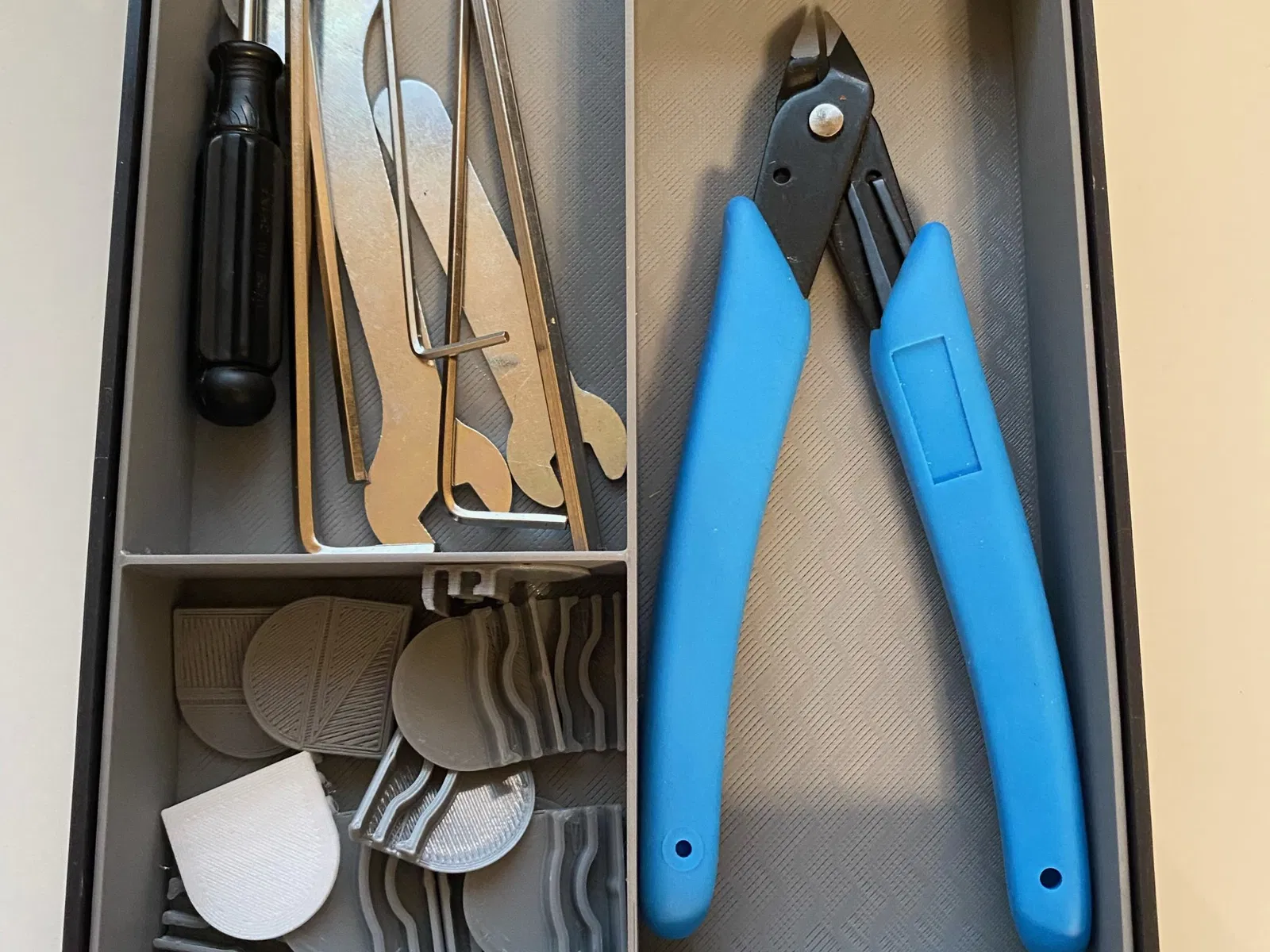 Phong ngăn kéo công cụ Inlay cho Ender 3 S1. Hầu hết các mục được sử dụng là thứ đầu tiên bạn nhận được khi mở ngăn kéo.