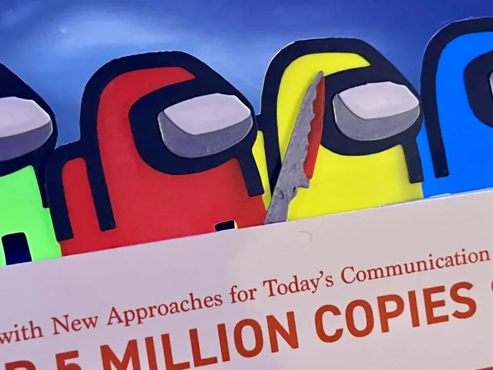 Remix của dấu trang Among Us VÀ các phần của một con dao đồ chơi để tạo ra The Imposter.