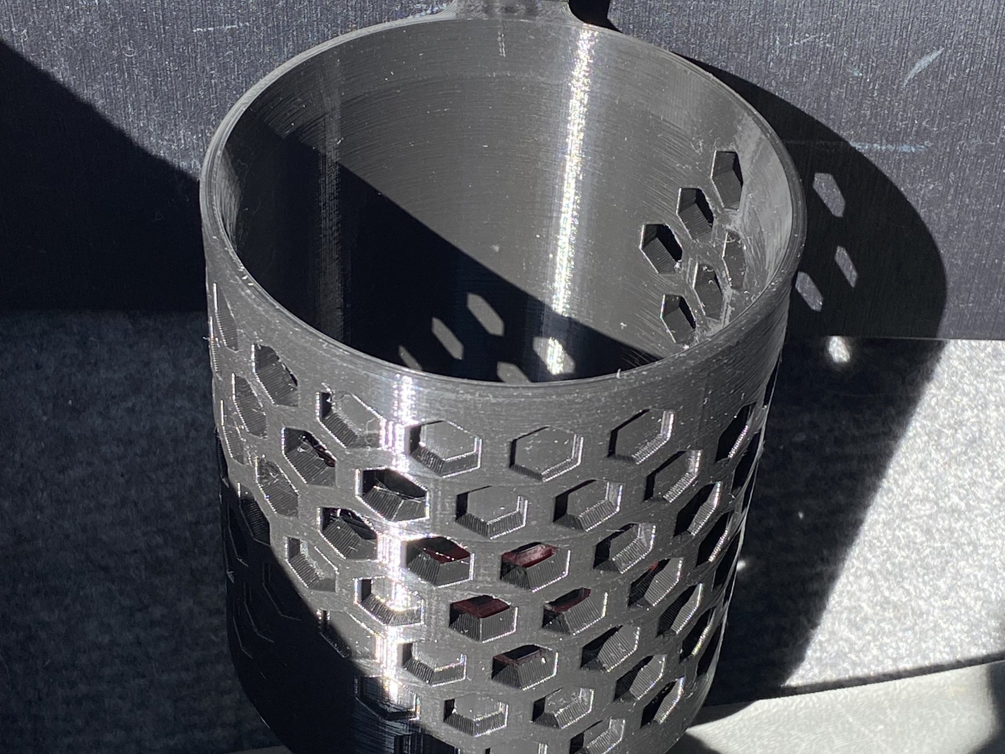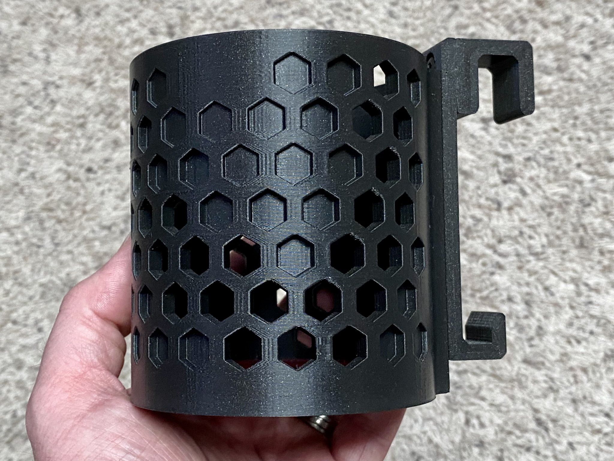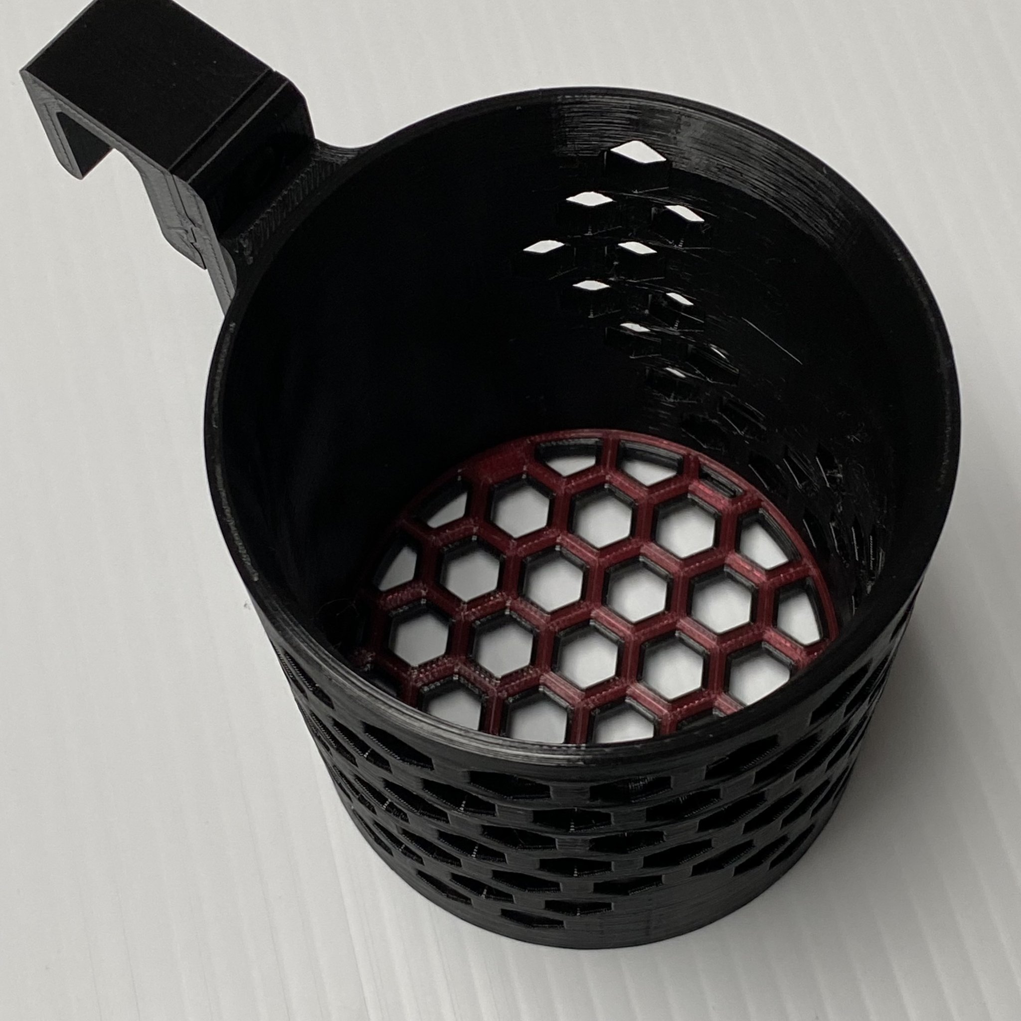 Vì giá đỡ cốc này sẽ nằm trong một chiếc xe có thể nóng trong nửa năm (đối với hầu hết mọi người), tốt nhất là sử dụng một loại filament chịu nhiệt như ABS hoặc ASA. Cơ sở của giá đỡ cốc cũng được thiết kế để thay đổi filament nơi mà độ lệch mẫu thay đổi. TPU bám tốt vào ABS và sẽ cung cấp một số khả năng chống trượt & đệm cho bất cứ thứ gì ở trong giá đỡ cốc.