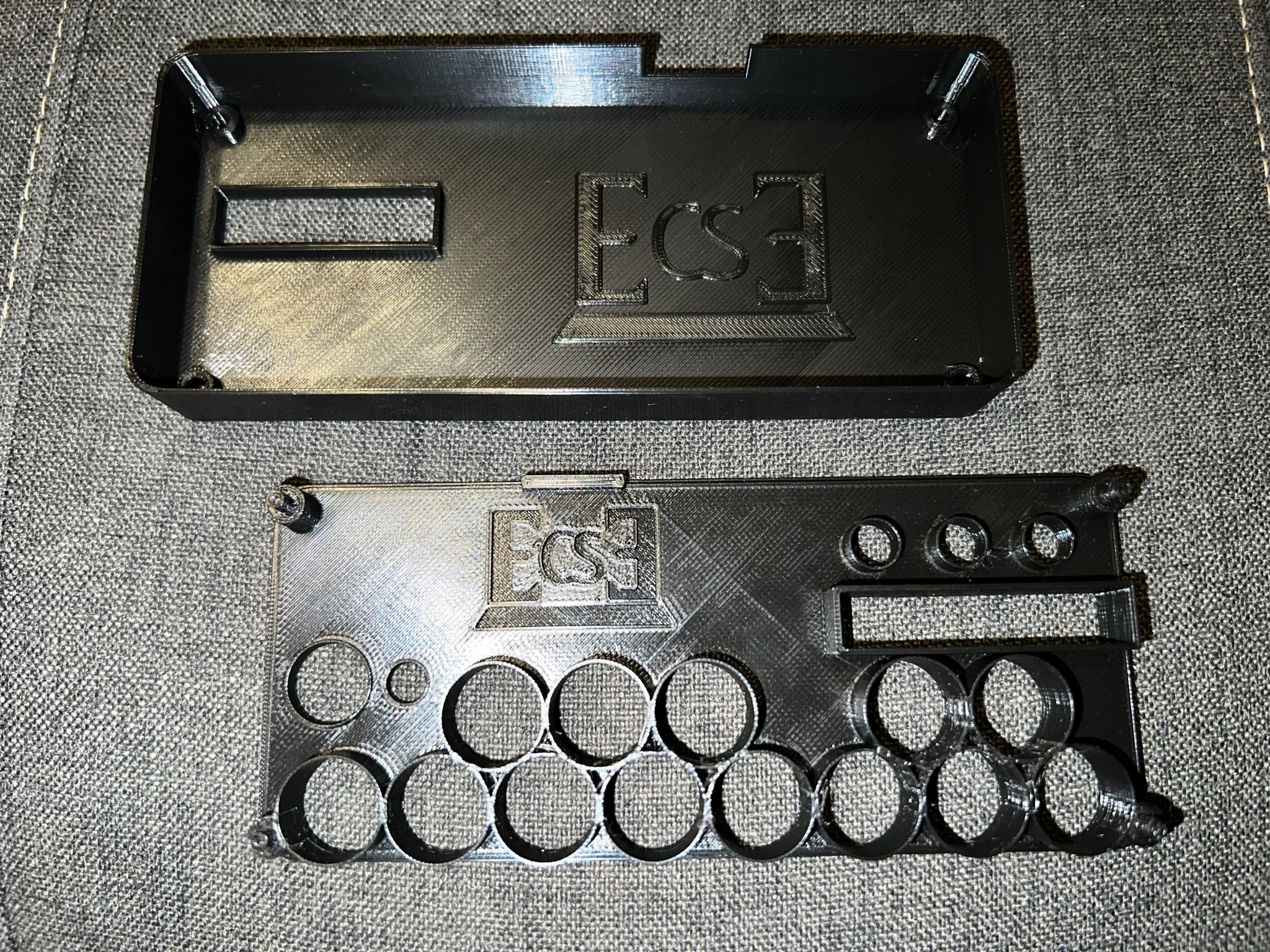 Kết nối với nhau. Không yêu cầu bất kỳ phần cứng bổ sung nào (không có vít, đai ốc, chốt, v.v.). Các phím trượt như các pít-tông trong các xi lanh mở để giữ chúng ở giữa các nút. Có một khu vực lõm với các lỗ cho các nút người dùng và lỗ cho buzzer piezo và biến trở âm lượng.