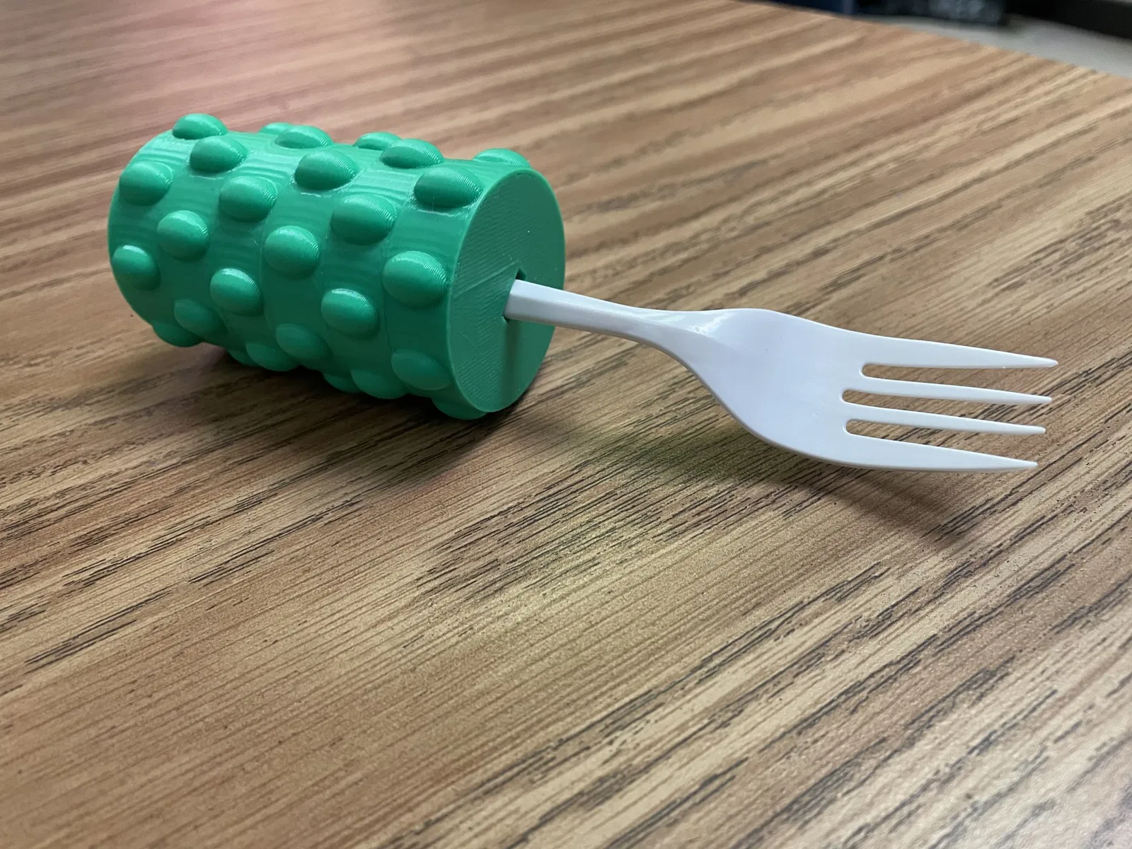 Mô hình này được tạo ra bởi một học sinh trong lớp học của tôi. Nó được thiết kế để giữ đồ dùng bằng bạc dùng một lần từ căng tin của trường chúng tôi. Chúng tôi đang tạo ra những sản phẩm này như một phần của dự án kỹ thuật và thiết kế mà tôi đang thực hiện trong lớp học của mình. Tất cả các thiết kế mà chúng tôi thực hiện trong năm học này đều là những công cụ hỗ trợ thích ứng để giúp đỡ người khác trong cuộc sống hàng ngày của họ.