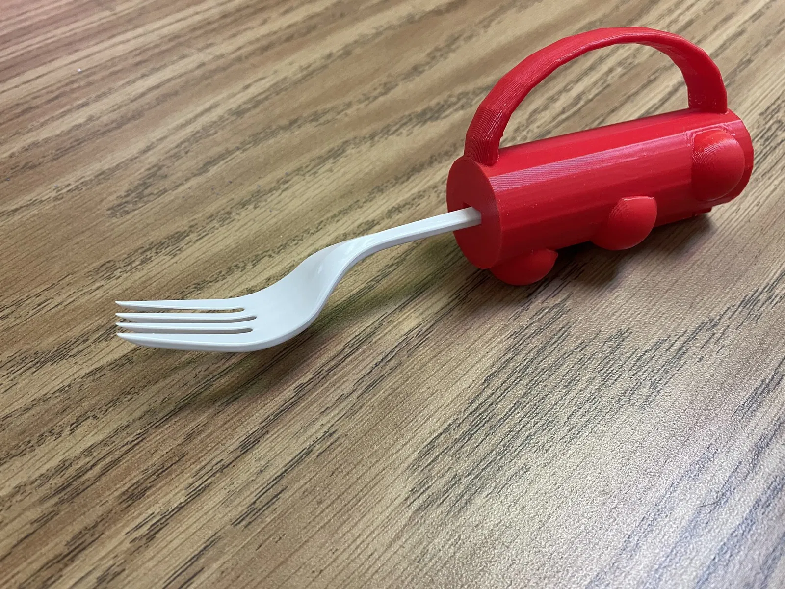 Mô hình này được tạo ra bởi một học sinh trong lớp học của tôi. Nó được thiết kế để giữ bộ đồ dùng bằng bạc dùng một lần từ căng tin của trường chúng tôi. Chúng tôi đang tạo ra những thứ này như một phần của dự án kỹ thuật và thiết kế mà tôi đang thực hiện trong lớp học của mình. Tất cả các thiết kế mà chúng tôi đang thực hiện trong suốt năm học đều là những công cụ hỗ trợ thích ứng để giúp đỡ người khác trong cuộc sống hàng ngày.
