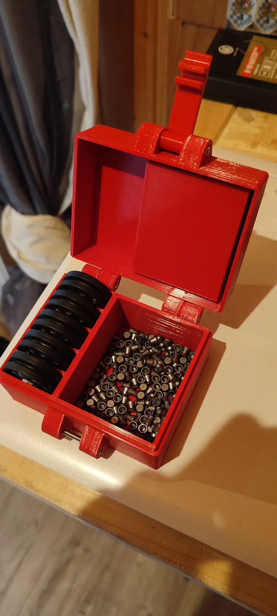 Đã tạo một hộp vận chuyển/lưu trữ nhỏ cho khẩu súng Hämmerlie CO2. Có chỗ cho 5 băng đạn tròn và khoảng 1 ½ hộp Diabolo.