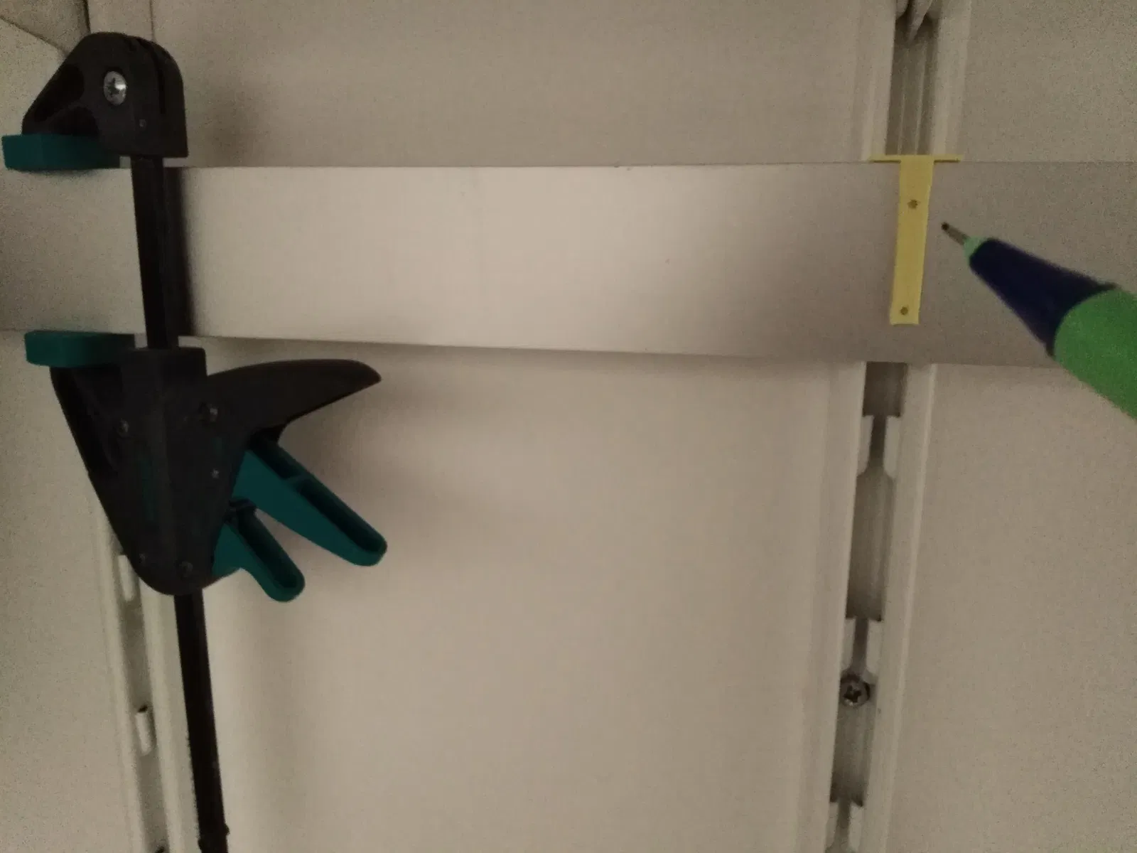 Điều này cho phép gắn một thanh nhôm vào hệ thống kệ Ikea BOAXEL, để treo công cụ hoặc hộp gần tường.