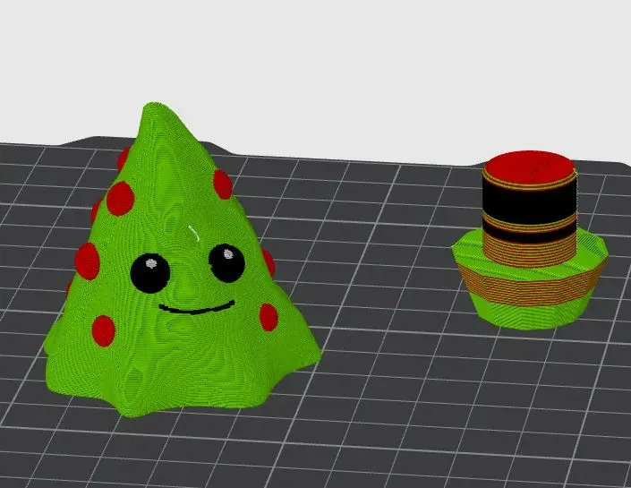 Cây Giáng Sinh Bé, được tạo ra bằng Blender, in và sơn bằng acrylic hoặc sử dụng AMS/MMU và sử dụng màu sắc filament. với đế và đỉnh được tách ra thành hai tệp để dễ in.