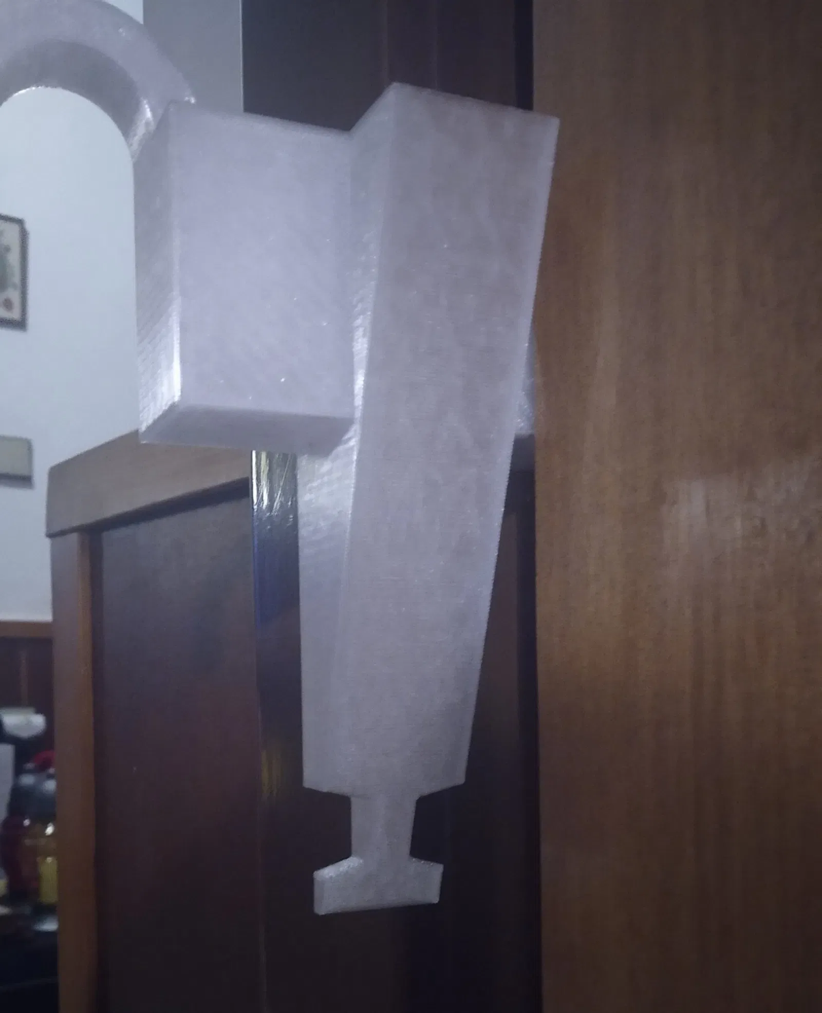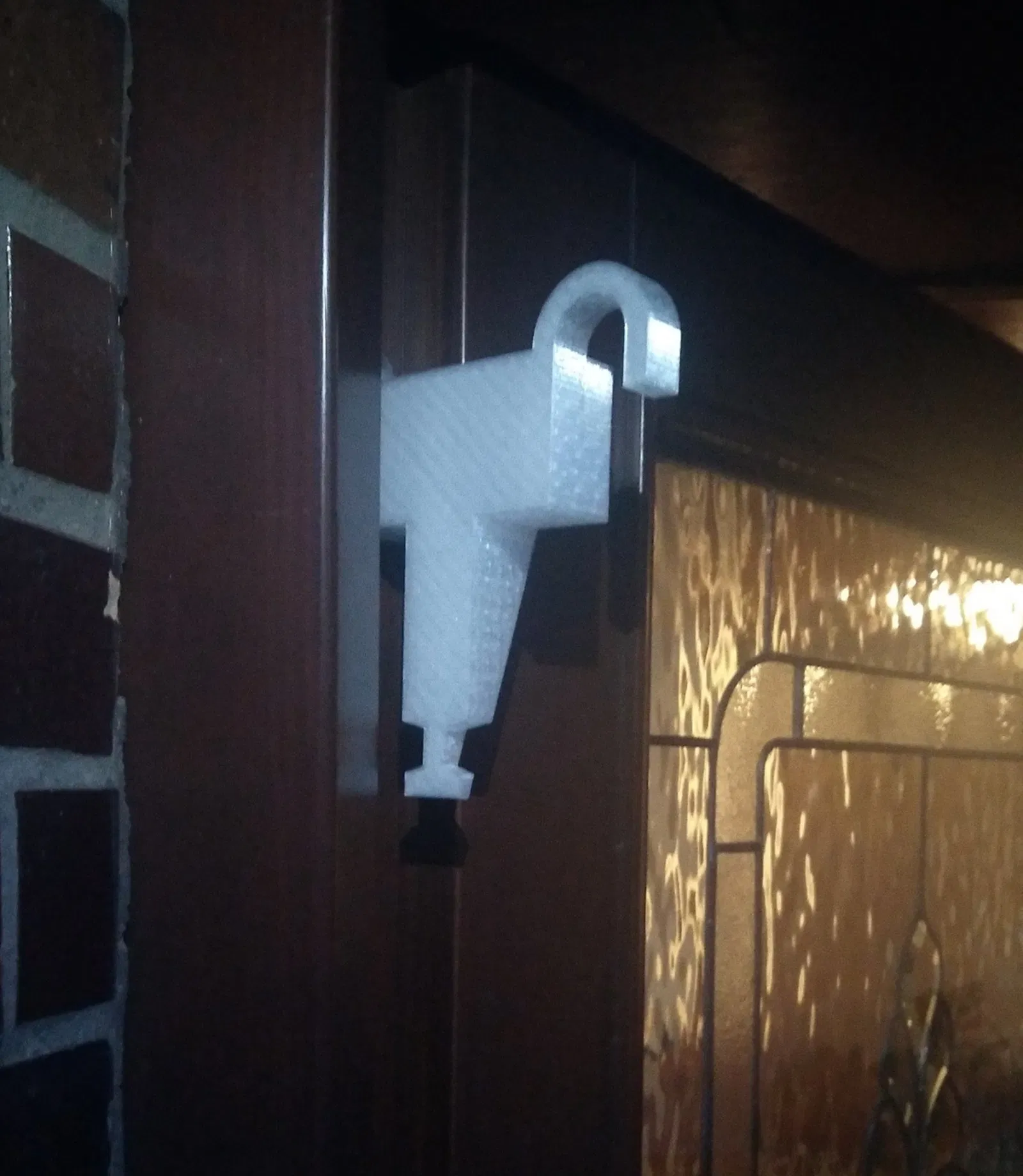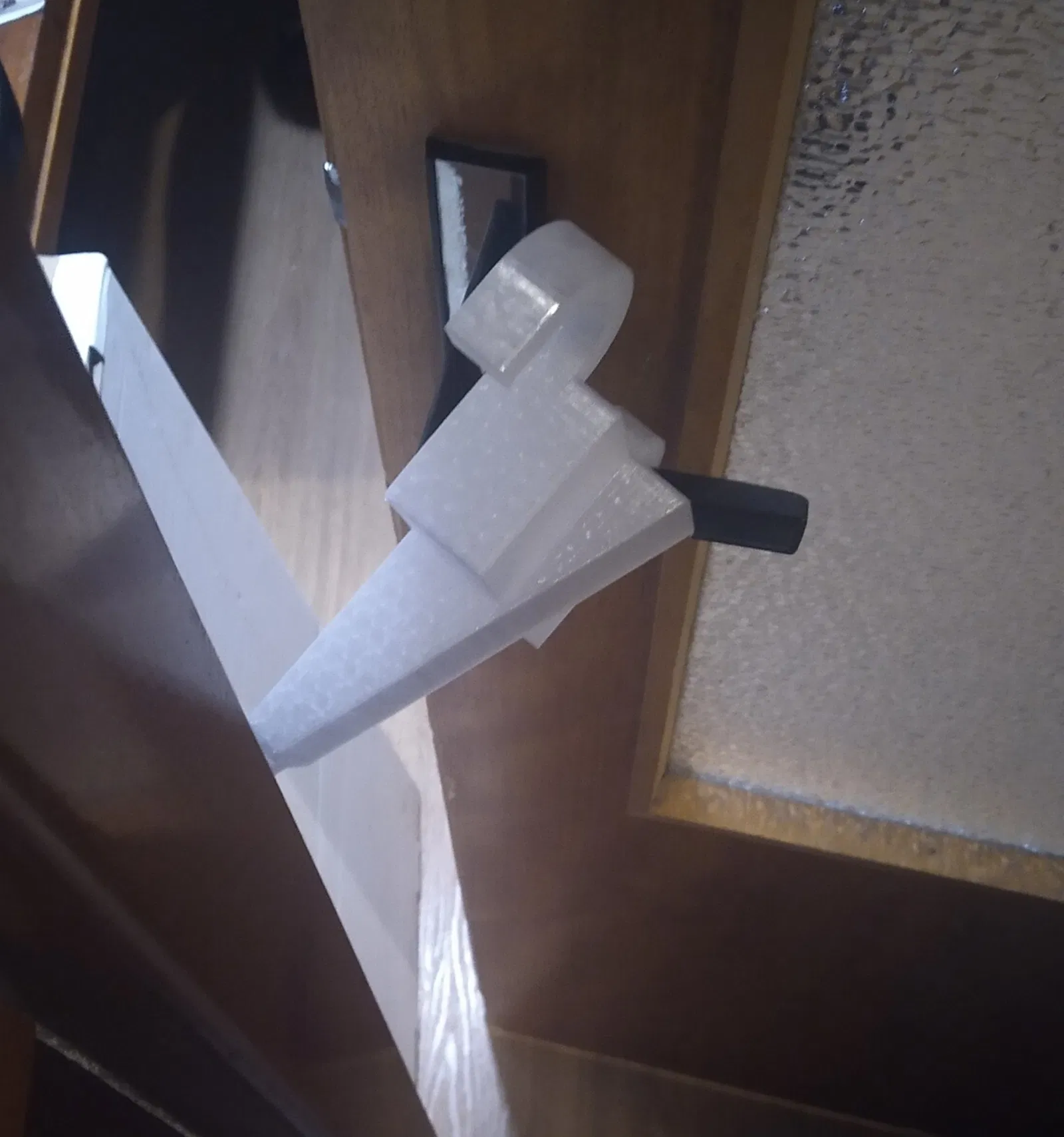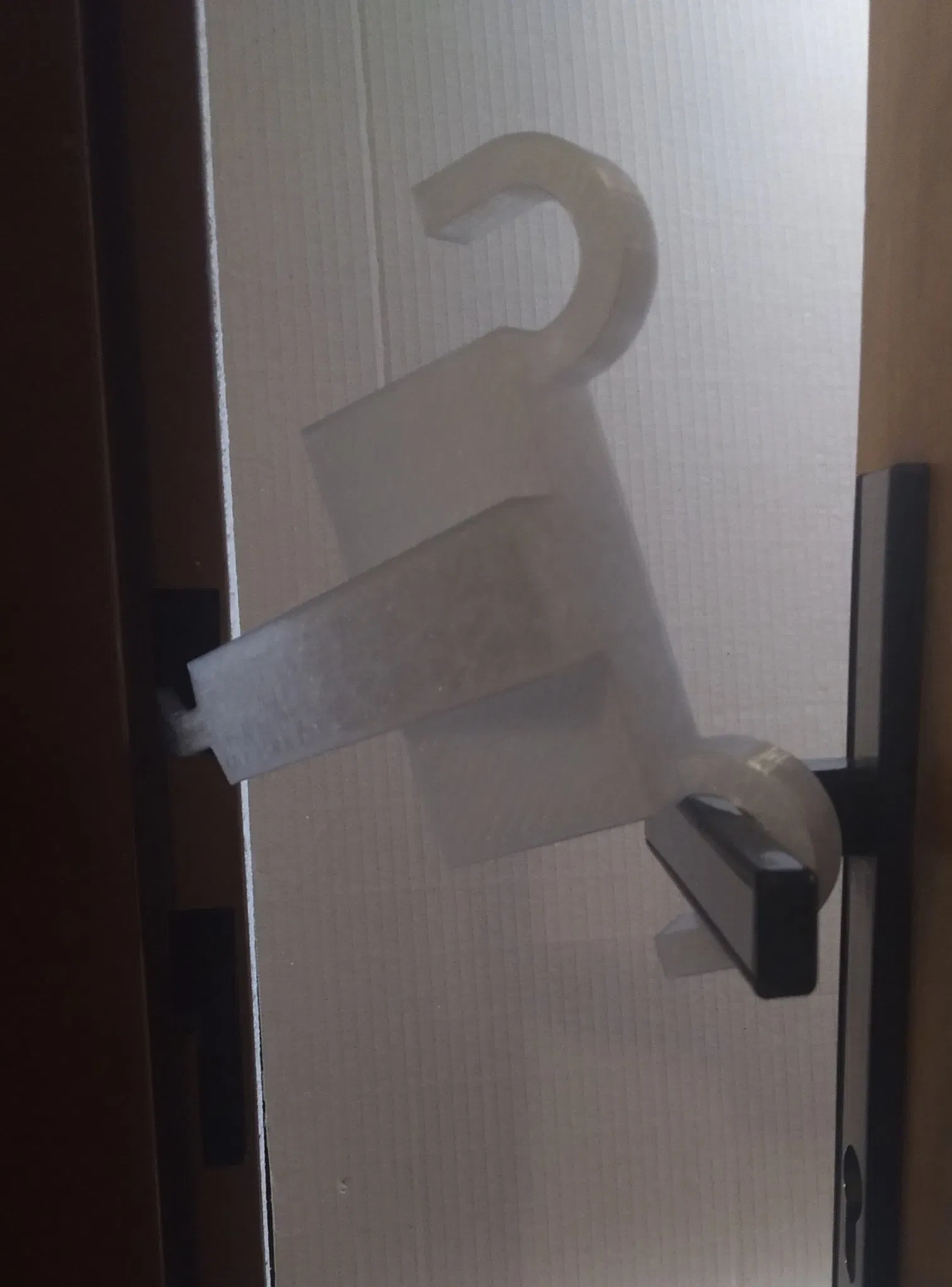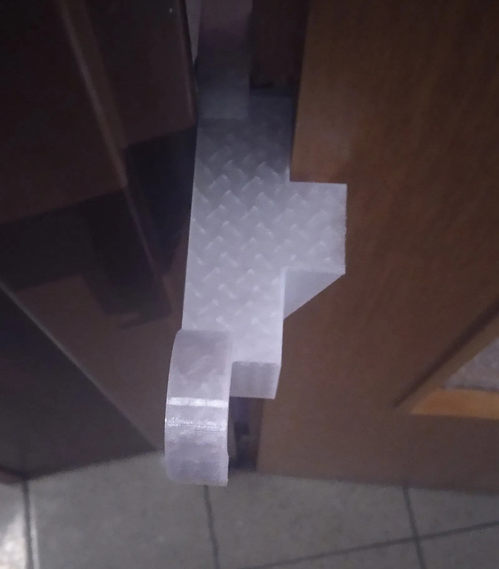 Dừng cửa 3 trong 1 có thể được sử dụng theo ba cách khác nhau: 1) miếng chêm tiêu chuẩn đặt dưới cửa 2) miếng đệm trong khe giữa cửa và khung cửa được gắn bằng móc trên bản lề cửa 3) cố định cửa đặt giữa tay nắm cửa và các lỗ trên khung cửa In mà không cần hỗ trợ.