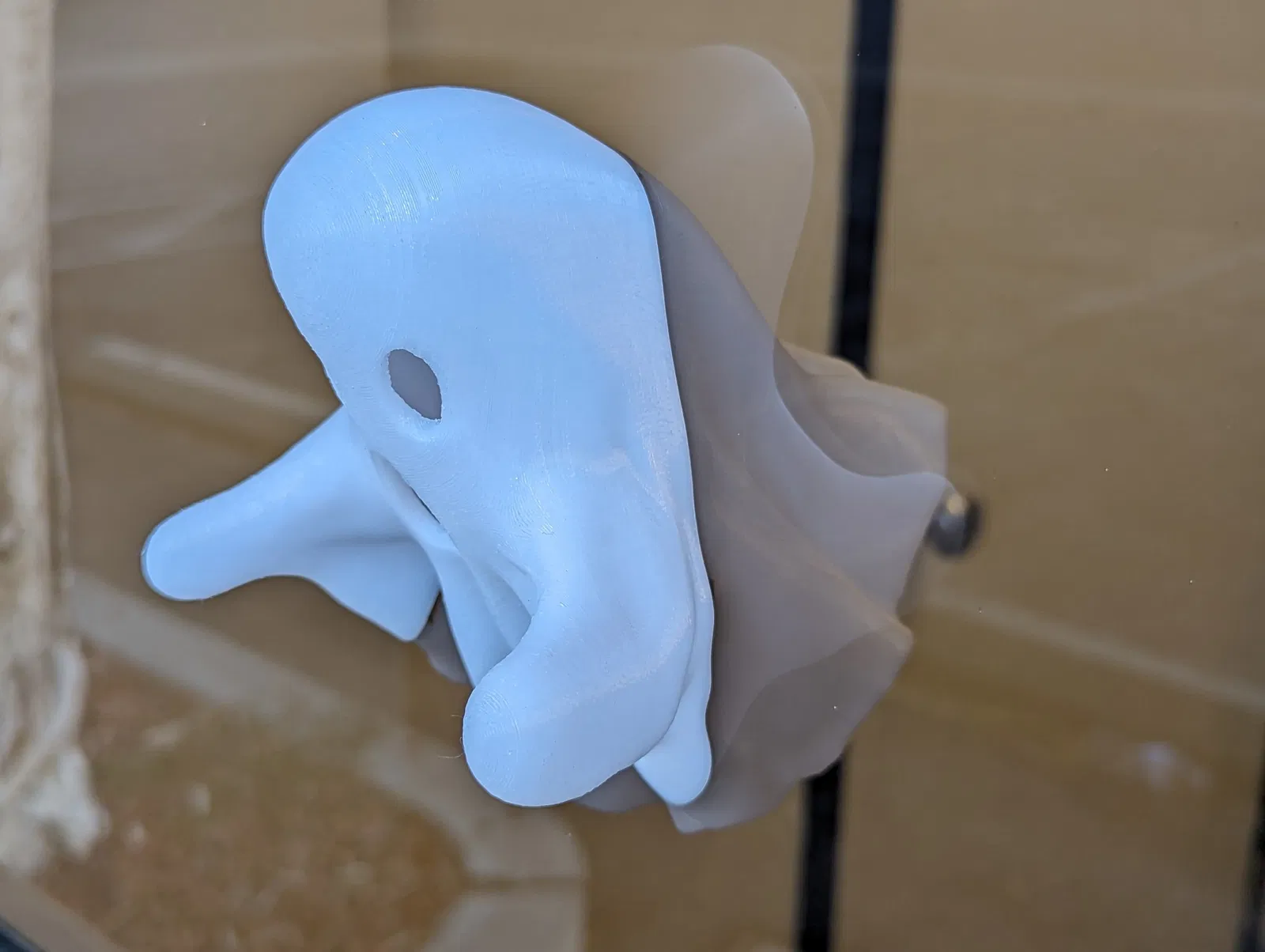Mô hình này được gắn vào hai bên của cửa sổ bằng băng keo hai mặt để tạo cảm giác như nó đang lơ lửng qua đó. Tôi đã sử dụng một loại filament PETG trắng hơi trong suốt để in mô hình này.