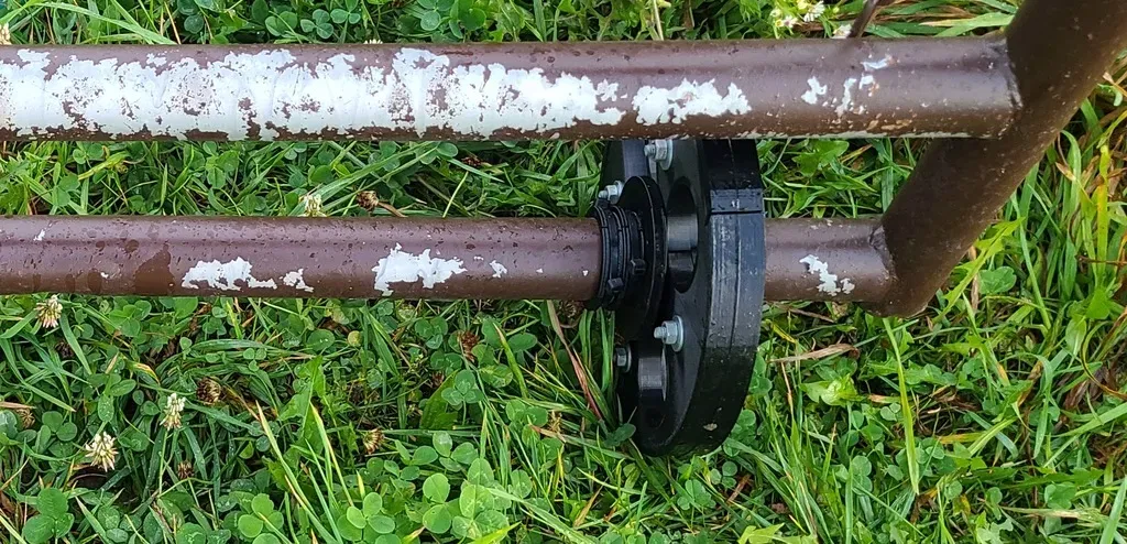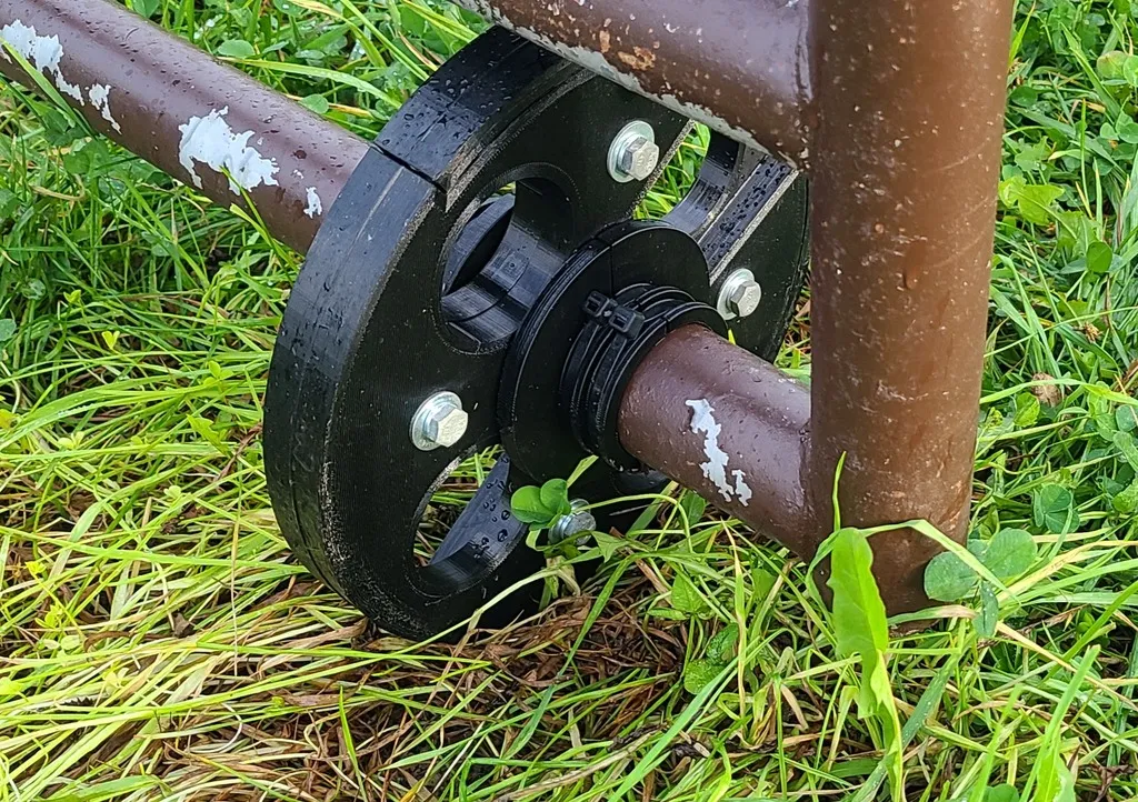 Đây là một bánh xe cổng dựa trên khái niệm "bánh xe trong cổng" của https://www.quikfence.com.au/gate-wheel. Nếu bạn ở Úc, hãy mua nó từ họ! Tôi cũng tin rằng thiết kế của họ sẽ tồn tại nhiều năm nữa so với thiết kế của tôi!
