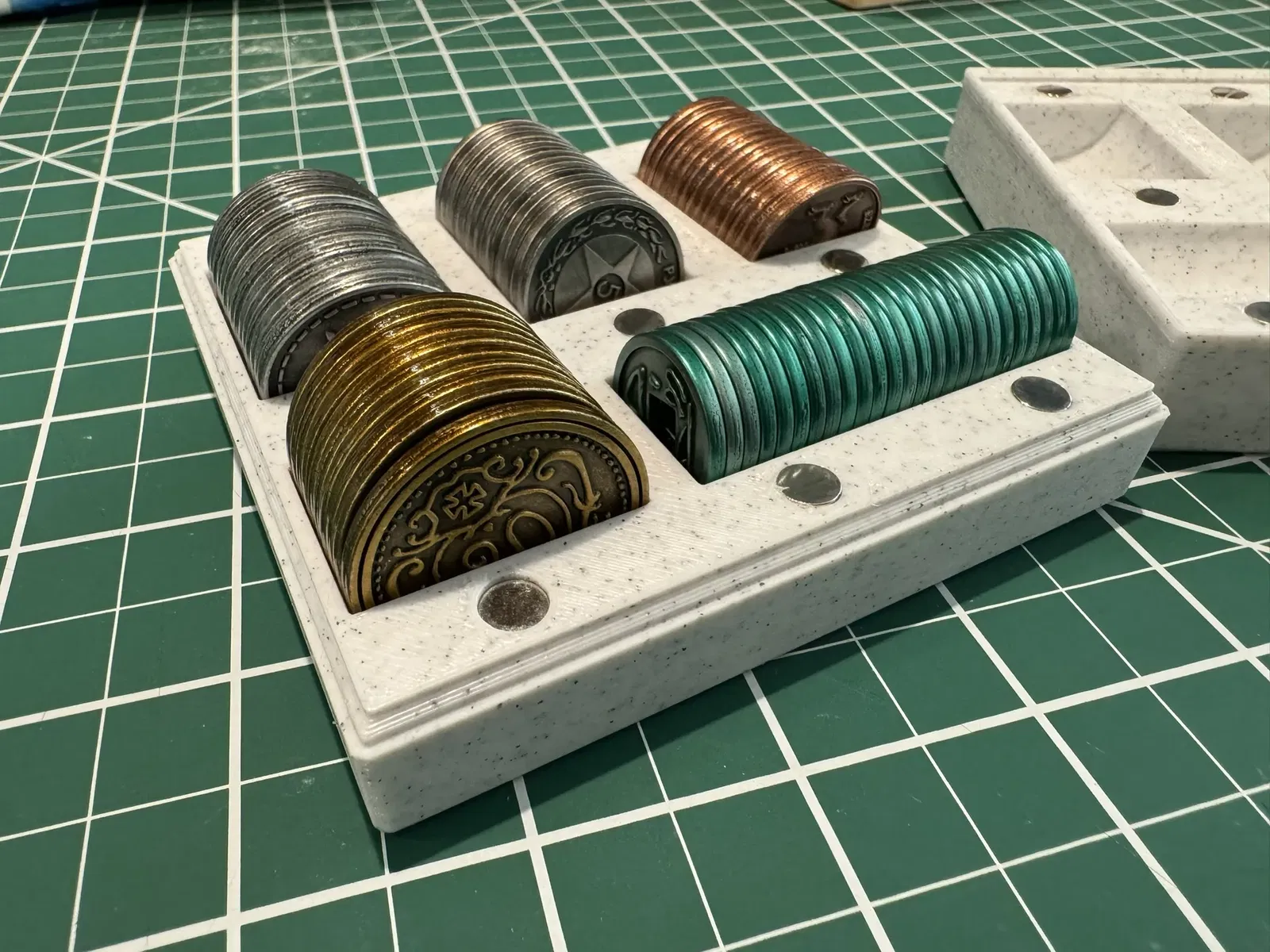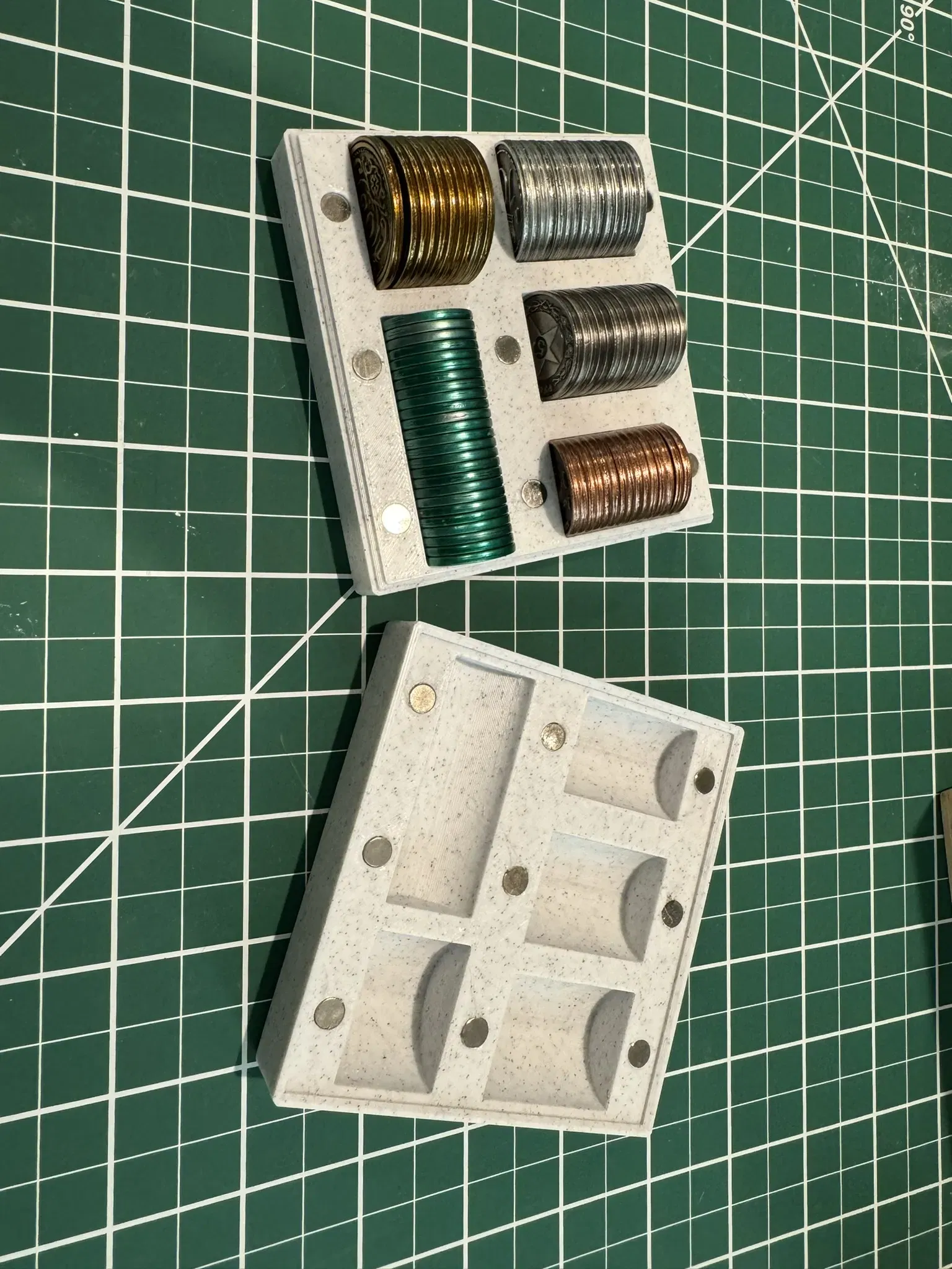 Hộp để chứa một bộ tiền Scythe (1s, 3s, 5s, 10s & 20s). Được giữ lại với nhau bằng nam châm (6mm x 1.5mm)