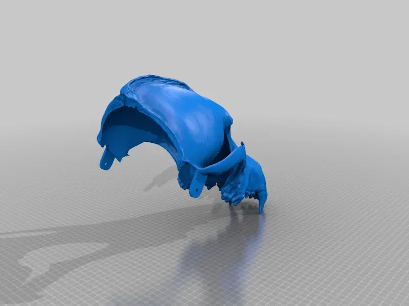 Tệp đã được chỉnh sửa của "Mẫu Sói Xám của Thư viện Đại học Victoria". Các tệp đã được sửa đổi để trở thành mặt nạ sọ có thể đeo cho trang phục. Các tệp đã được điều chỉnh kích thước để phù hợp với đầu người lớn trung bình, bạn có thể điều chỉnh kích thước theo sở thích của mình. Tôi đã phóng to đôi mắt một chút để người đeo có thể nhìn rõ hơn, và thêm cơ chế bản lề cho hàm có thể cử động. Bạn sẽ cần khoan lỗ để lắp đặt lò xo.
