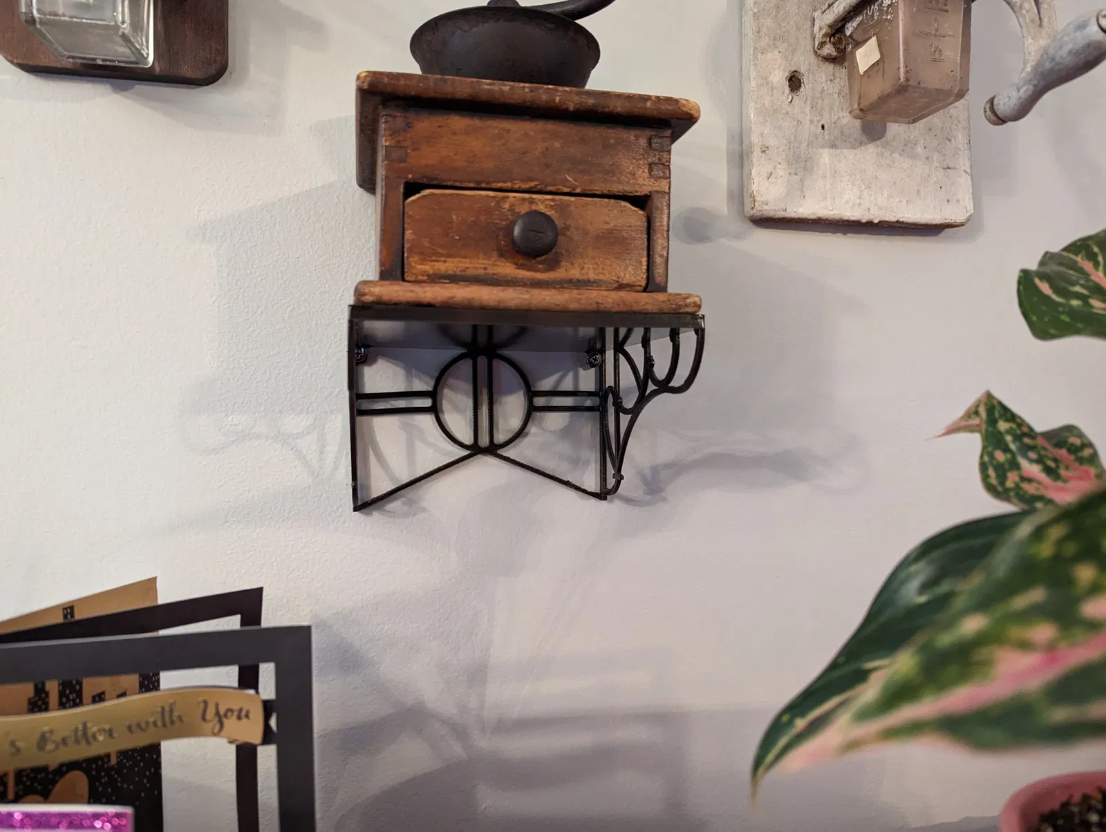 Tôi cần một kệ nhỏ để đặt một trong những máy xay cà phê của mình, và không tìm thấy bất cứ thứ gì có kích thước/kiểu dáng phù hợp, vì vậy tôi đã tạo ra kệ lấy cảm hứng từ nghệ thuật trang trí này để giải quyết vấn đề.