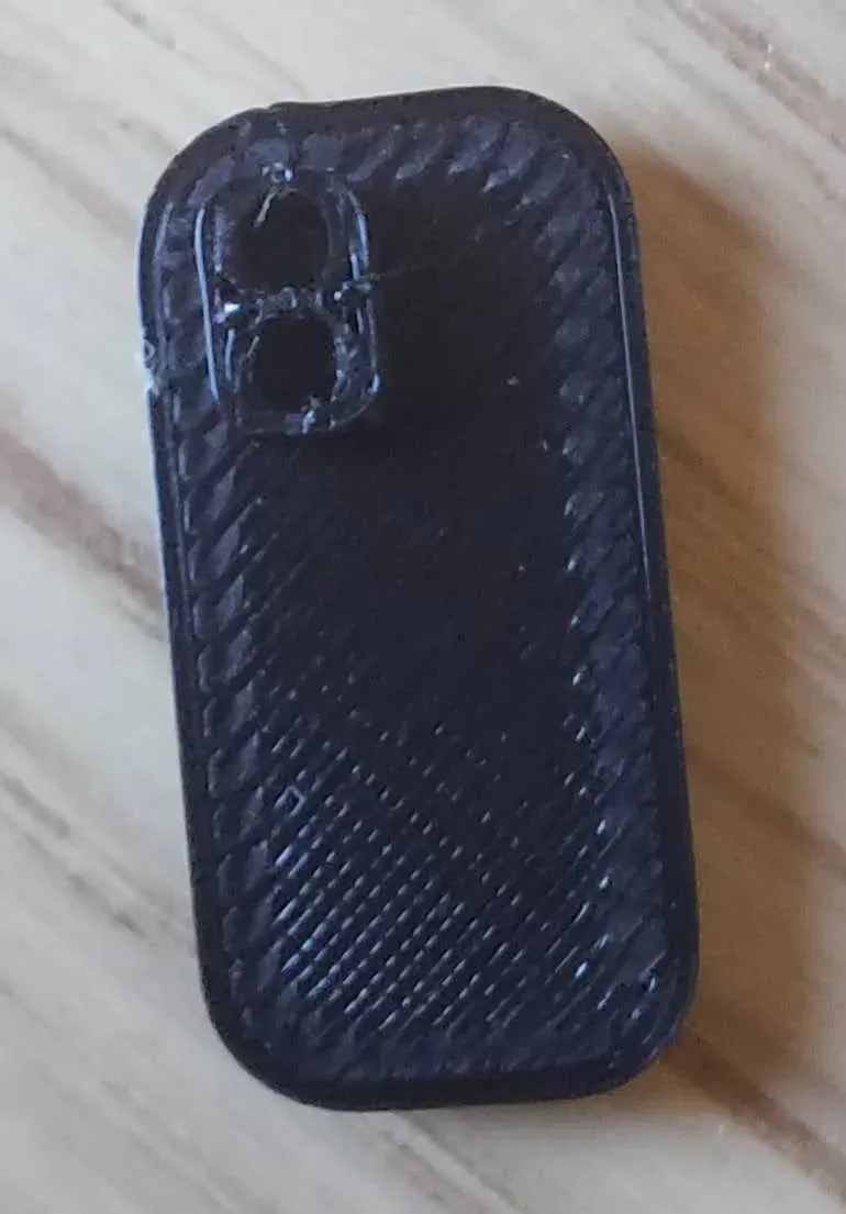 Một chiếc điện thoại búp bê. 2cm*1cm. Chiếc này được in bằng prusament PLA, với 15% độ đặc và chất lượng 0.15. Mất 4-5 phút để in.