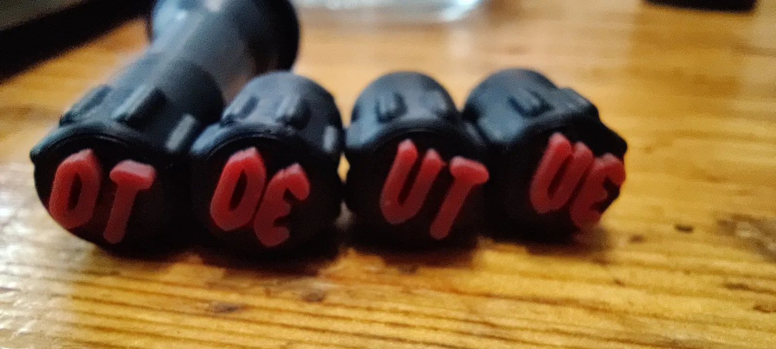 Đối với những người sống ở các quốc gia yêu cầu thay đổi lốp mùa đông và mùa hè theo điều kiện. Chỉ cần in những cái này và đặt chúng lên mà không cần đánh dấu bằng cách nào khác. Những cái này có thể được in từ bất kỳ loại filament thông thường nào (PLA, PETG, ASA, ABS…). Tôi sẽ in những cái này từ ASA hoặc ABS, vì hai loại này có khả năng chịu nhiệt tốt hơn. In với chiều cao lớp tối đa 0.15 mm để các ren hoạt động đúng cách. Không cần hỗ trợ. Các chữ cái in hoa chỉ có bằng tiếng Anh và tiếng Phần Lan. Một cái trống được cung cấp để dễ dàng tùy chỉnh.