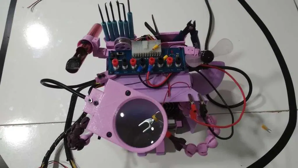 Trung tâm làm việc được thiết kế để cố gắng thống nhất các công cụ và vật liệu cần thiết cho một công việc hàn và kiểm tra trong không gian nhỏ nhất có thể, với sự xem xét các nhu cầu mà tất cả chúng ta gặp phải khi thực hiện một công việc như vậy.