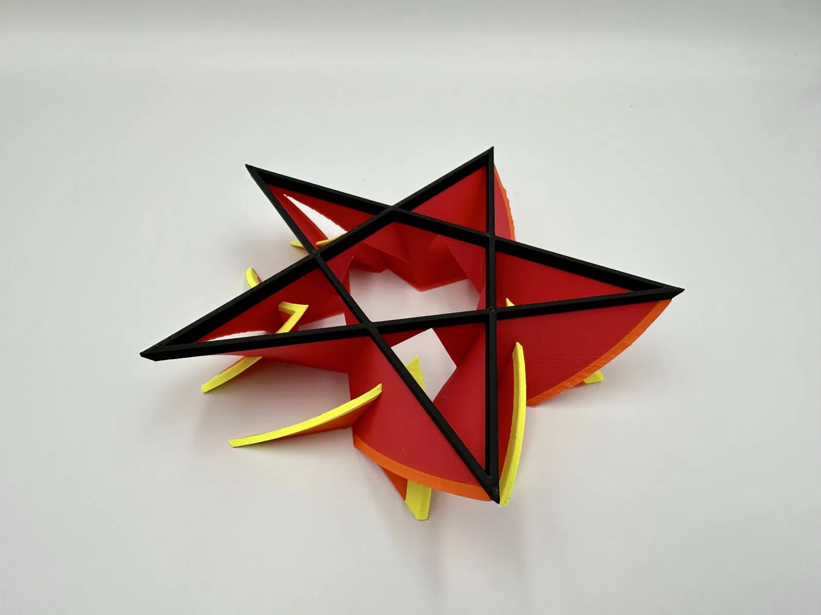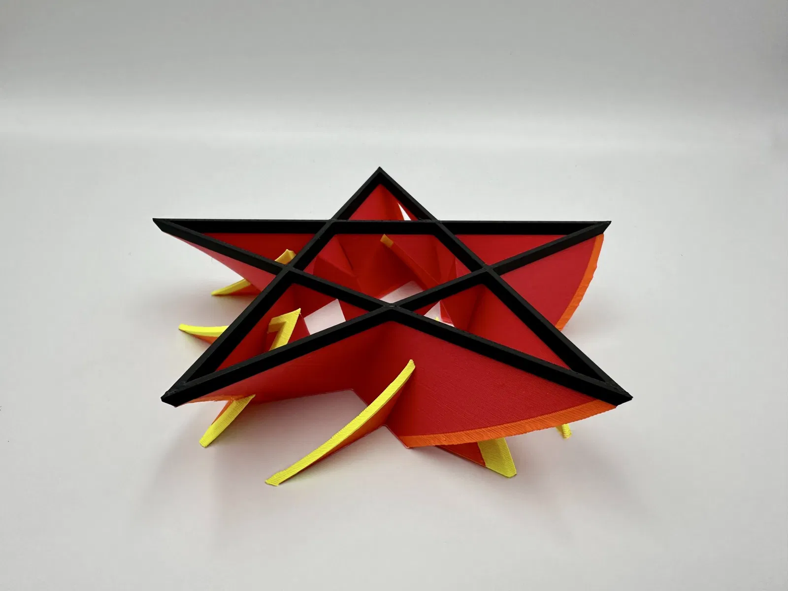 Tệp Bambu 3MF trong khu vực tệp đã được sử dụng để sản xuất mô hình trong các bức ảnh trên với Extrudr NX-2 màu đen mờ, màu cam mờ và màu vàng neon mờ và PLA màu đỏ mờ eSun.