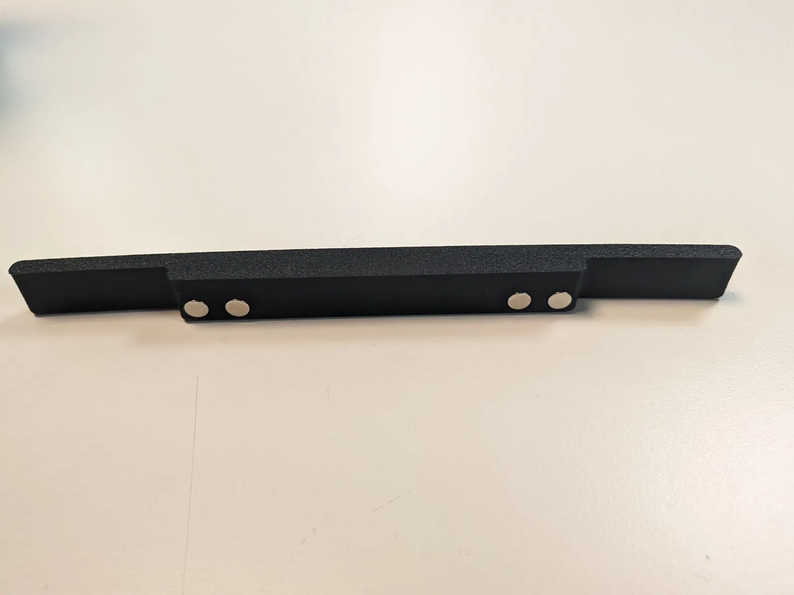 Nếu viền dưới của màn hình của bạn là kim loại/từ tính, ấn 8 nam châm 6x2mm vào các lỗ trên bề mặt cong. Nếu viền màn hình của bạn không từ tính, hãy sử dụng băng dính hai mặt.