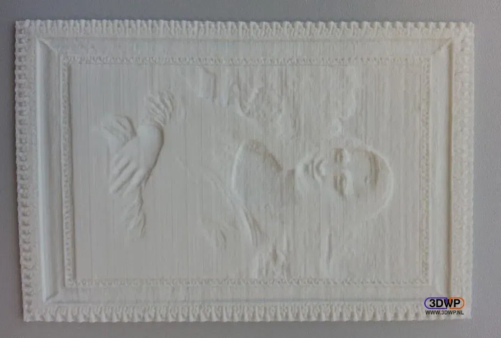 Đây là một lithophane của Mona Lisa (La Gioconda) nổi tiếng của Leonardo da Vinci. Khi được in trong FDM, tốt nhất là
