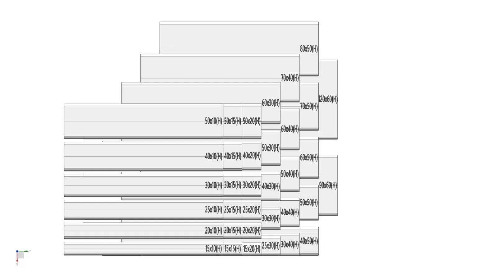 Chiều cao 15mm và chiều rộng (15mm, 20mm, 25mm, 30mm, 40mm và 50mm)