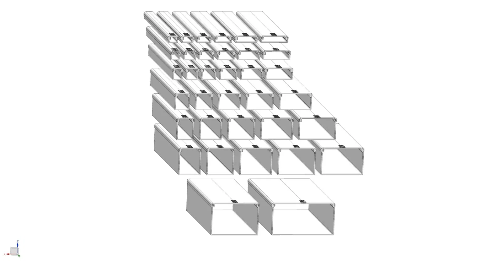 Tải xuống các dải dây điện, (Ống bảo vệ dây cáp) để che giấu dây và cáp, các dải được thêm vào với chiều dài 250mm và trong các kích thước nội bộ sau: