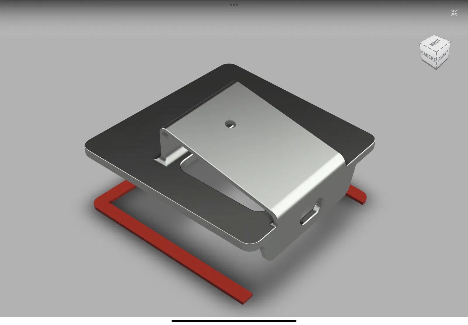 Giá được cố định bằng băng dính hai mặt ở 3 cạnh (màu đỏ trên bản phác thảo).